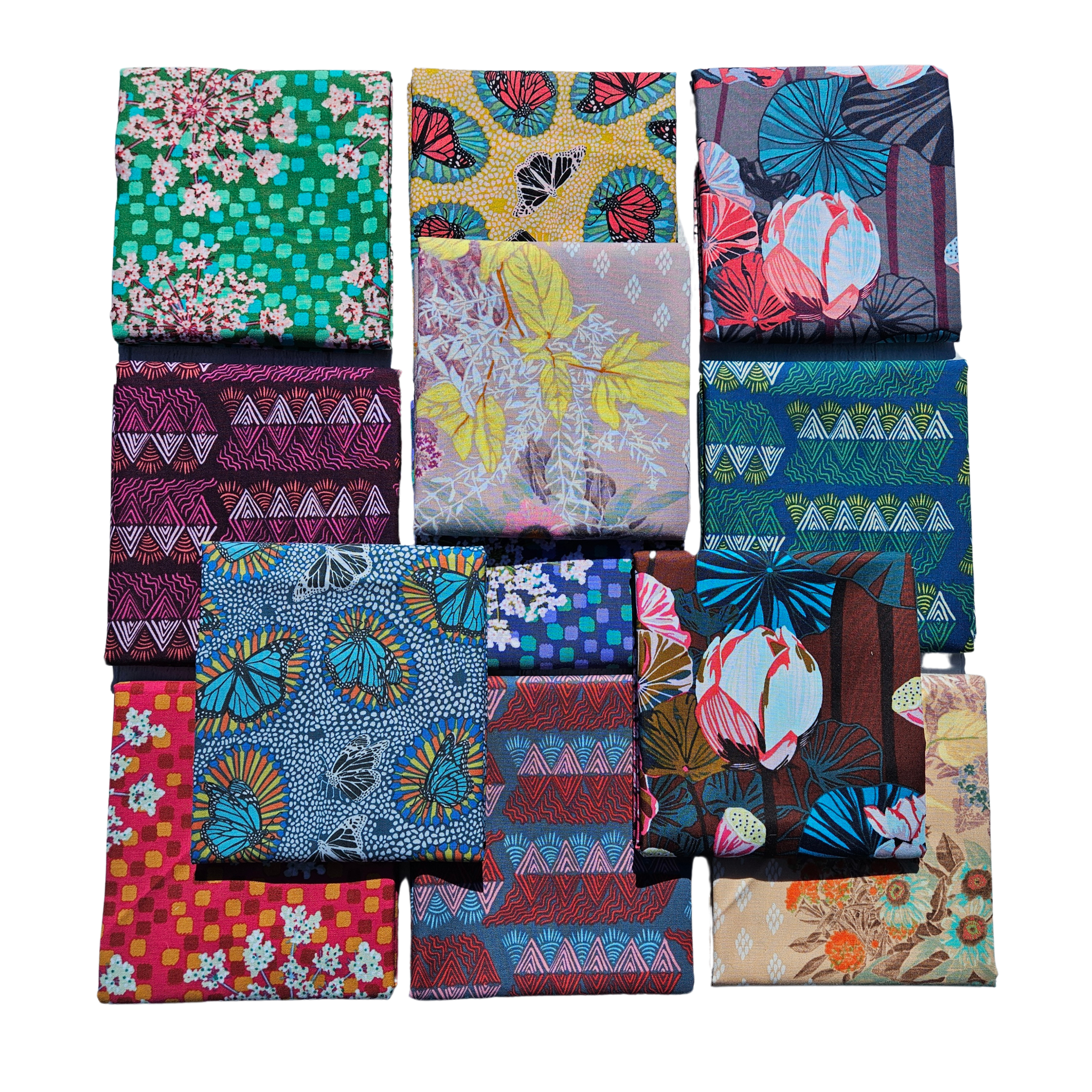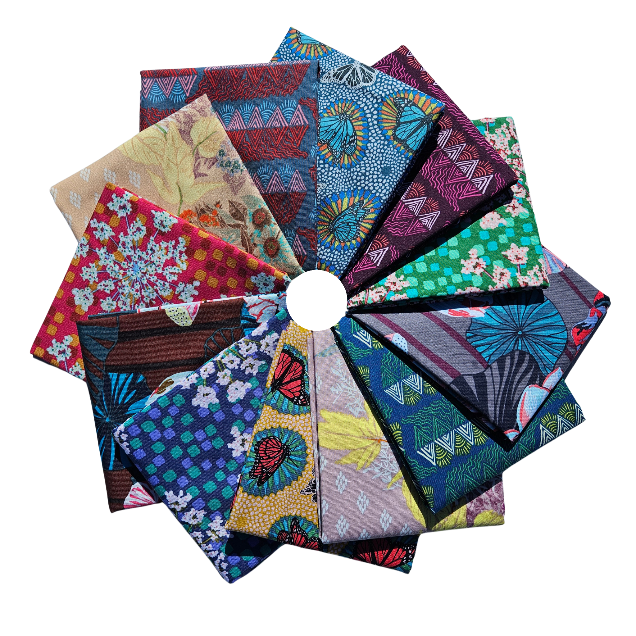 This One Mile Radiant Bundles includes 12 half yard cuts, (18" x 42"), hand cut in our shop. The bundles include one of each print shown from the One Mile Radiant collection designed by Anna Maria for FreeSpirit Fabrics.