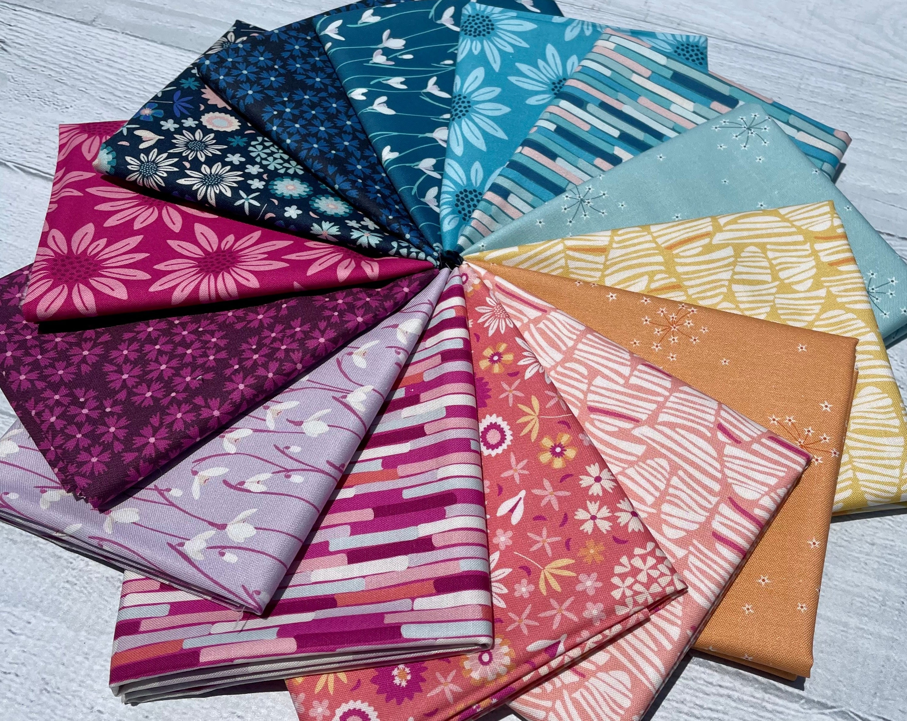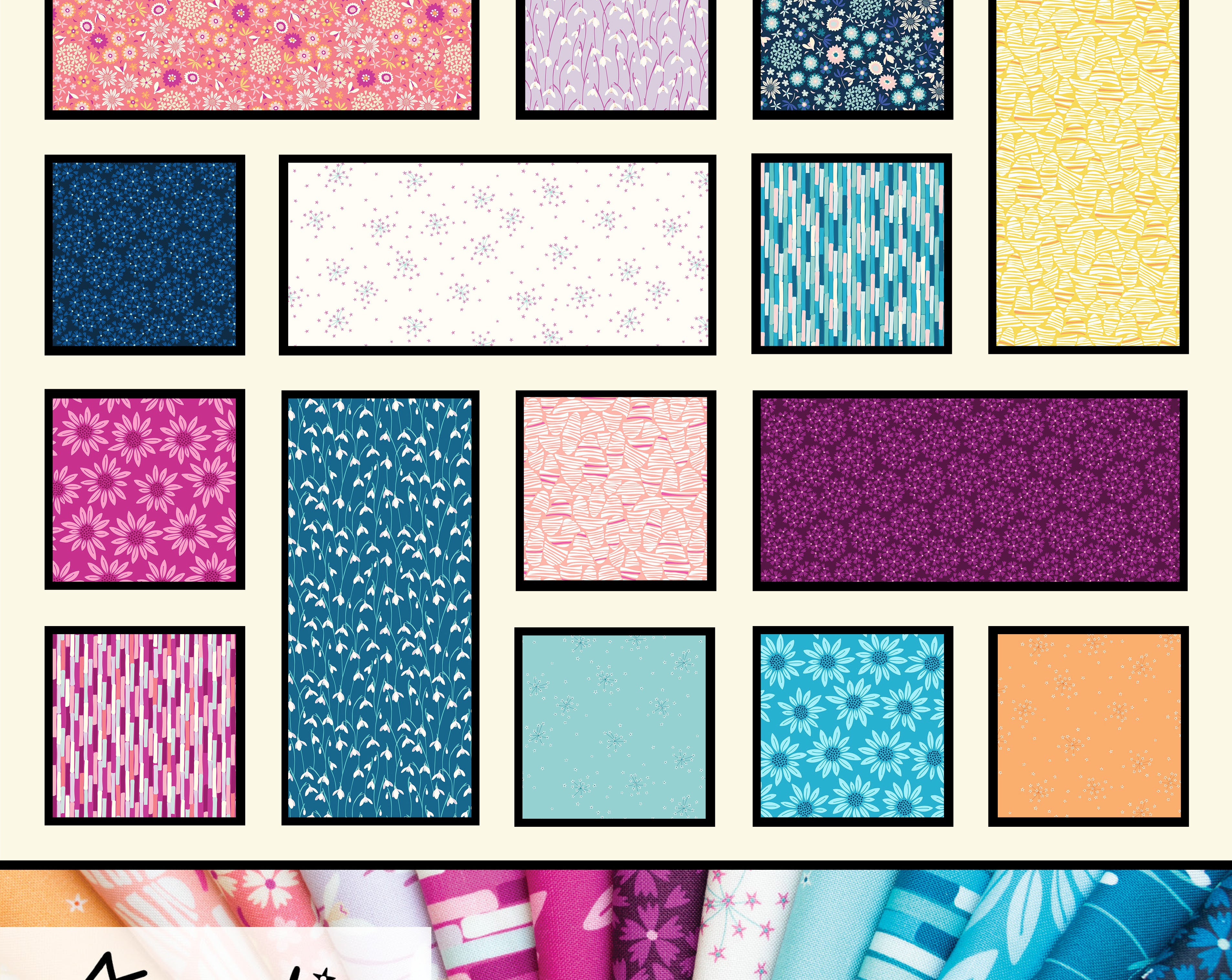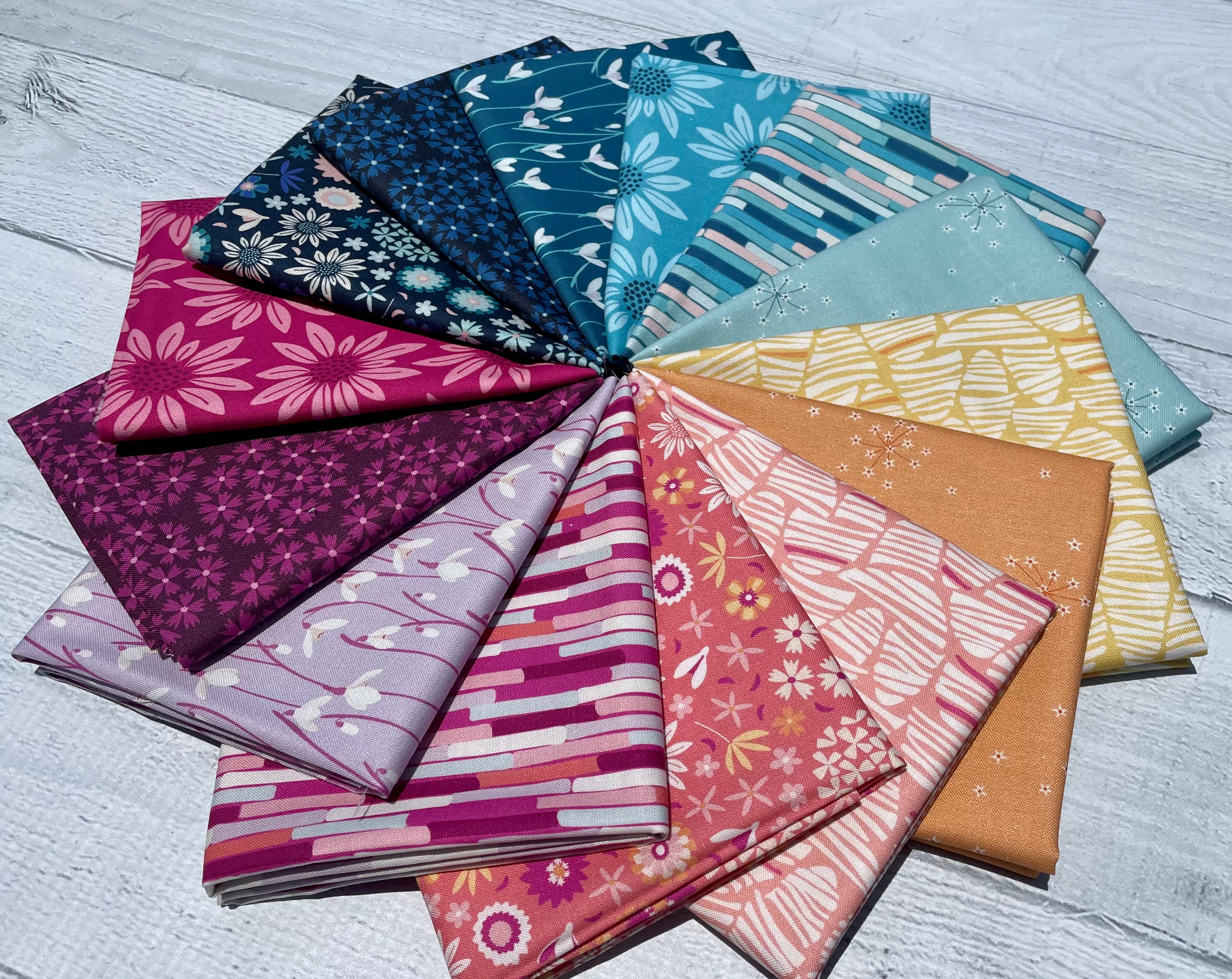 Arcadia by Pippa Shaw for Figo Fabrics. The Arcadia collection was inspired by daydreams of a utopian garden where plants from all seasons can blossom together, a place of comfort, hope and joy. With florals, stripes and abstract shapes you can add a fresh bouquet to your projects.