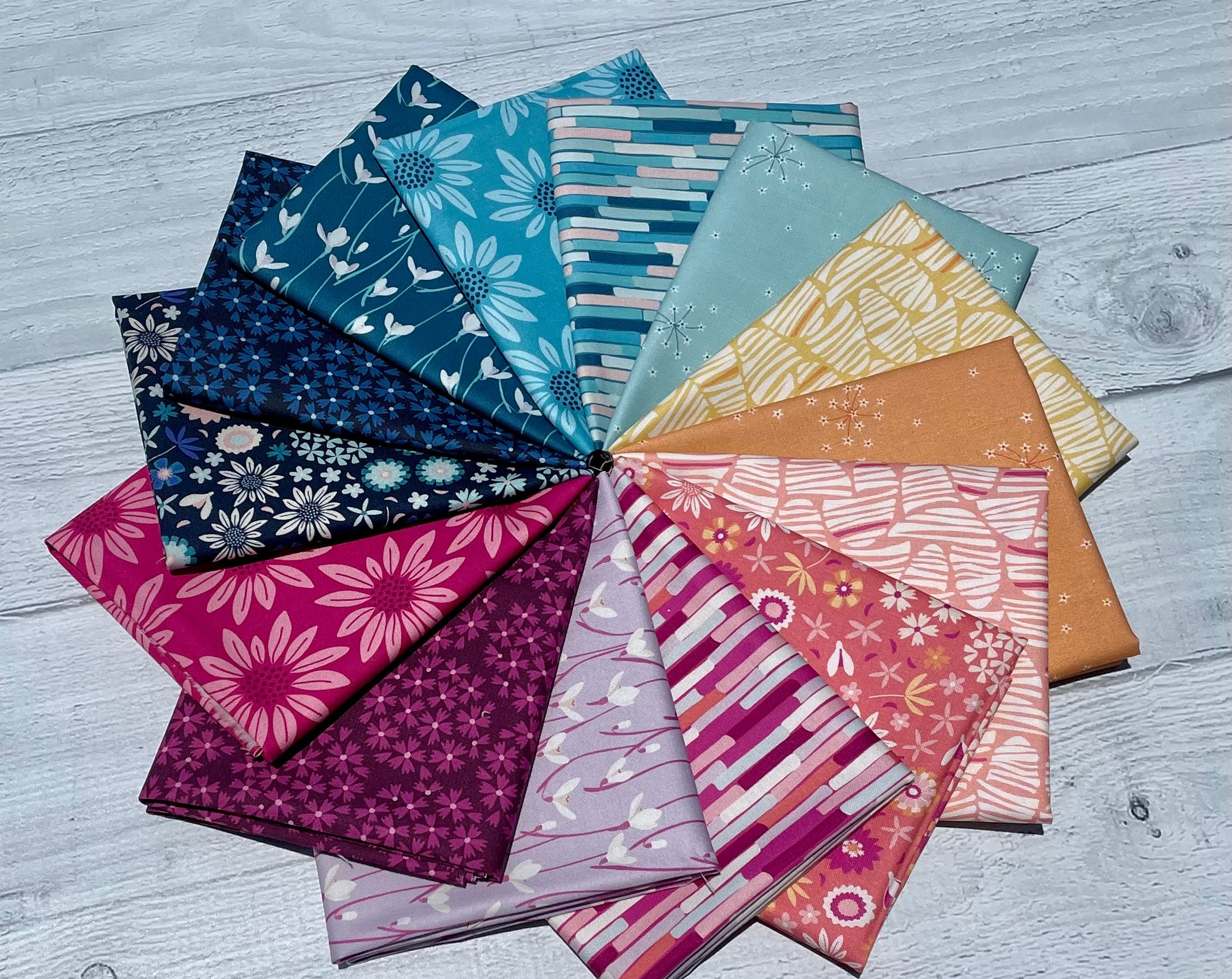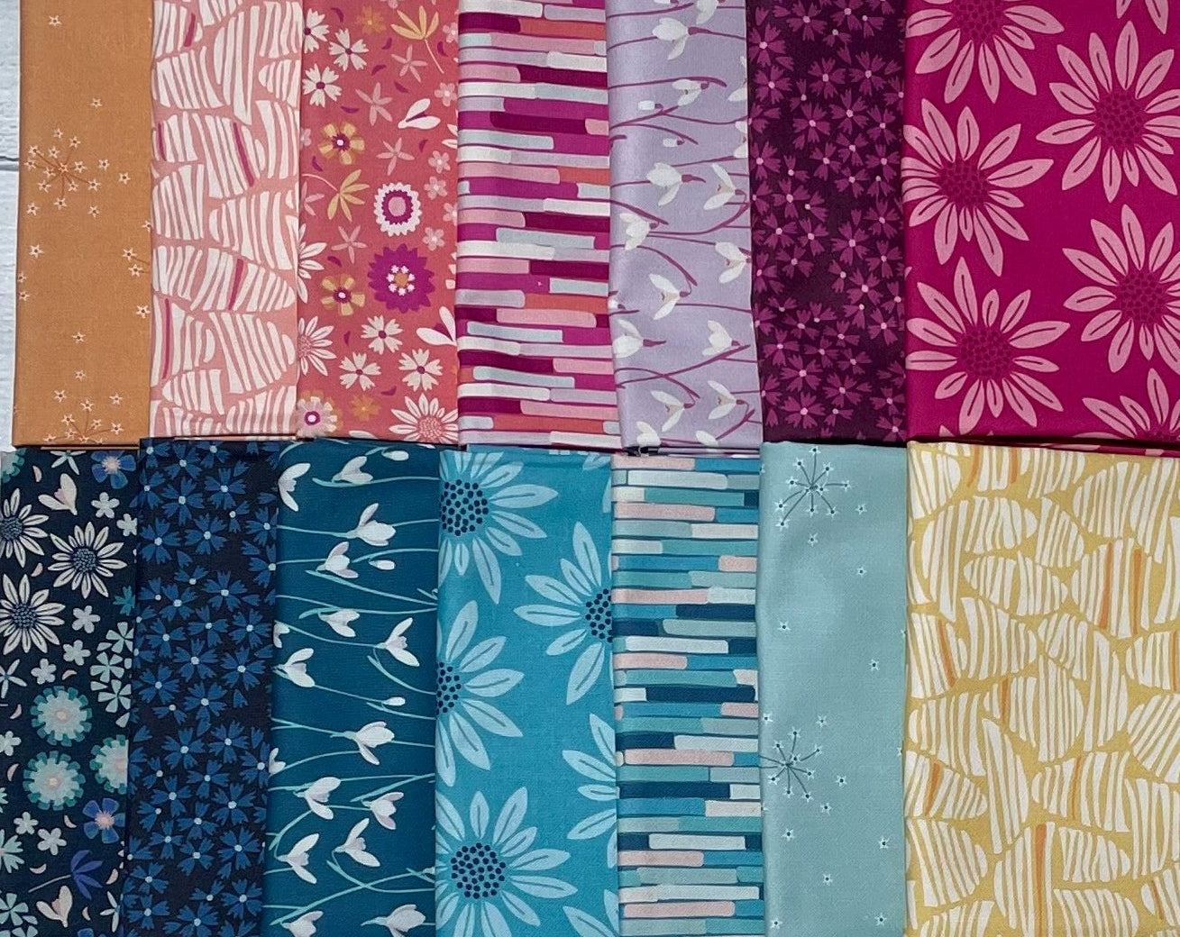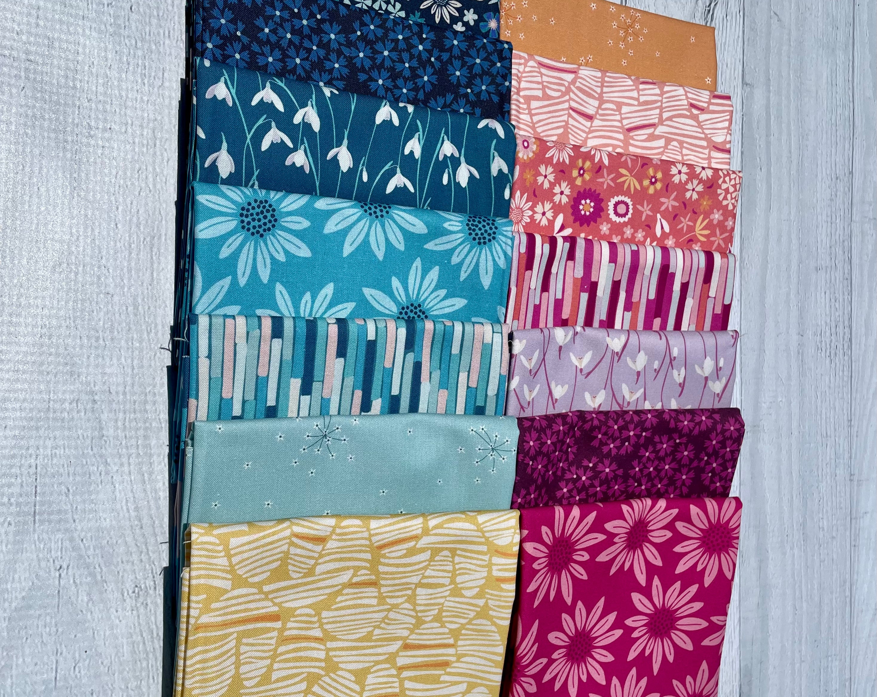 Arcadia by Pippa Shaw for Figo Fabrics. The Arcadia collection was inspired by daydreams of a utopian garden where plants from all seasons can blossom together, a place of comfort, hope and joy. With florals, stripes and abstract shapes you can add a fresh bouquet to your projects.