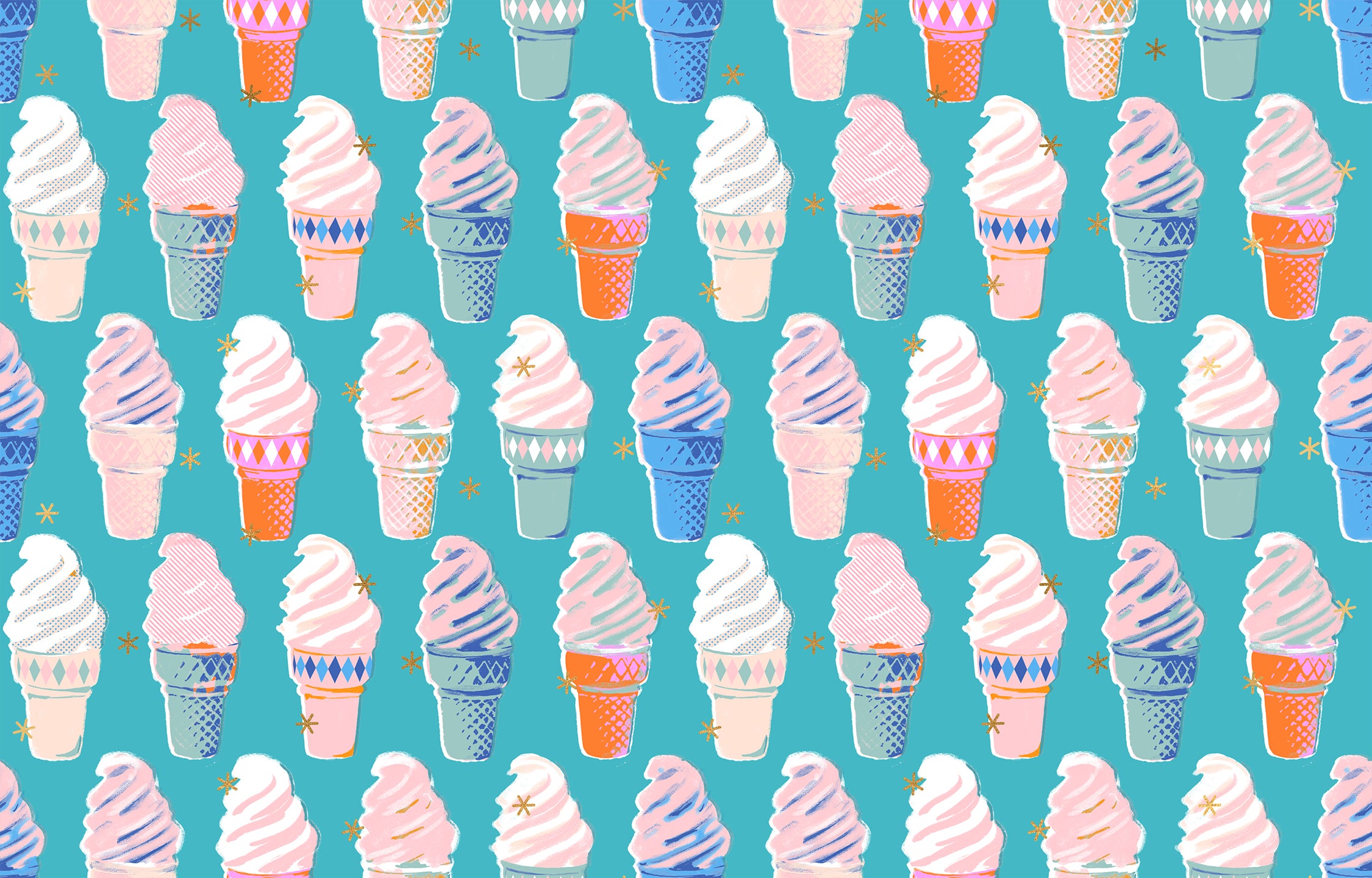 Melody shares the inspiration behind this collection: it started with a wish to revisit some of her favorite designs, including ice cream cones and typewriters. The centerpiece, the large Best Day Ever print, unites many beloved motifs—from fresh floral elements to horse and typewriter sketches created over a decade ago. Nostalgic touches like the bird, ice cream cone, and telephone reference her first Ruby Star Society release. This line also revives the Typewriters print featured on fabric since 2011, now complemented by a new panel showcasing four oversized typewriters inspired by recent artwork. Additionally, the Ice Cream fabric returns in a range of new hues, accompanied by new colors of the popular Hearts print, quickly becoming a favorite accent.