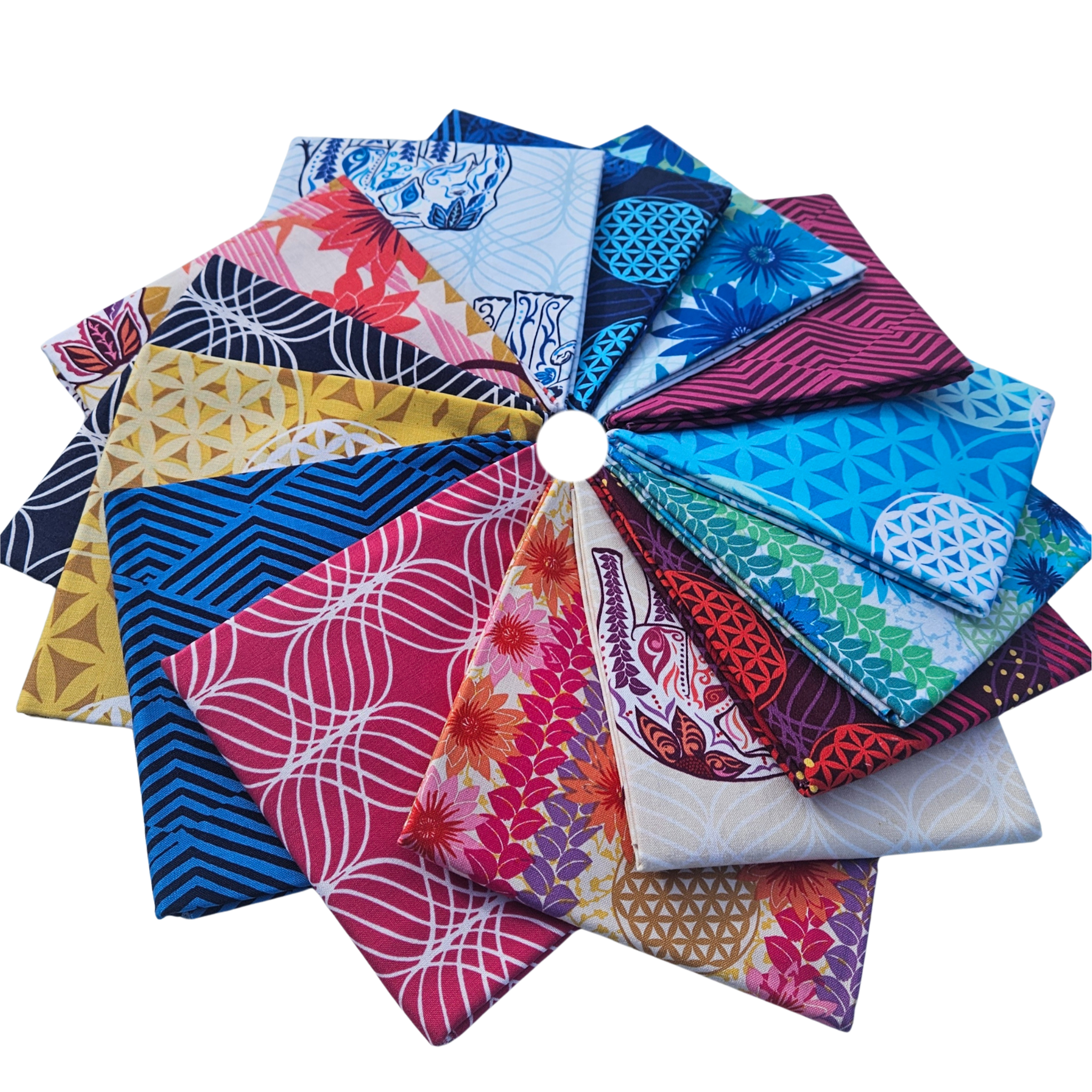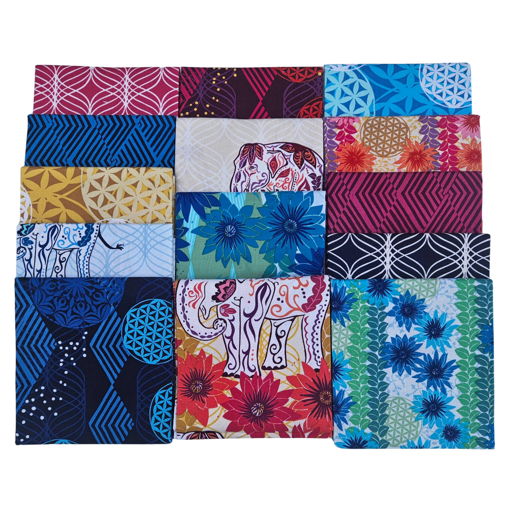 The Kismet Fat Quarter bundle includes 14 fat quarters, (18" x 21"), hand cut in our shop. Each bundles includes one of each print from the Kismet collection designed by Valori Wells for FreeSpirit Fabrics.