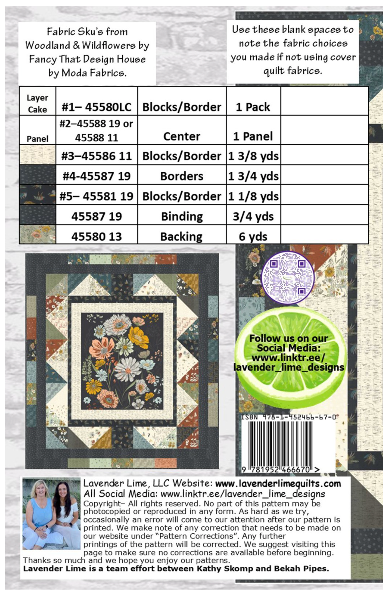 An easy and quick design using a Layer cake and a panel. Cover quilt fabric is Woodland Wildflowers from Fancy That Design House by Moda Fabrics.