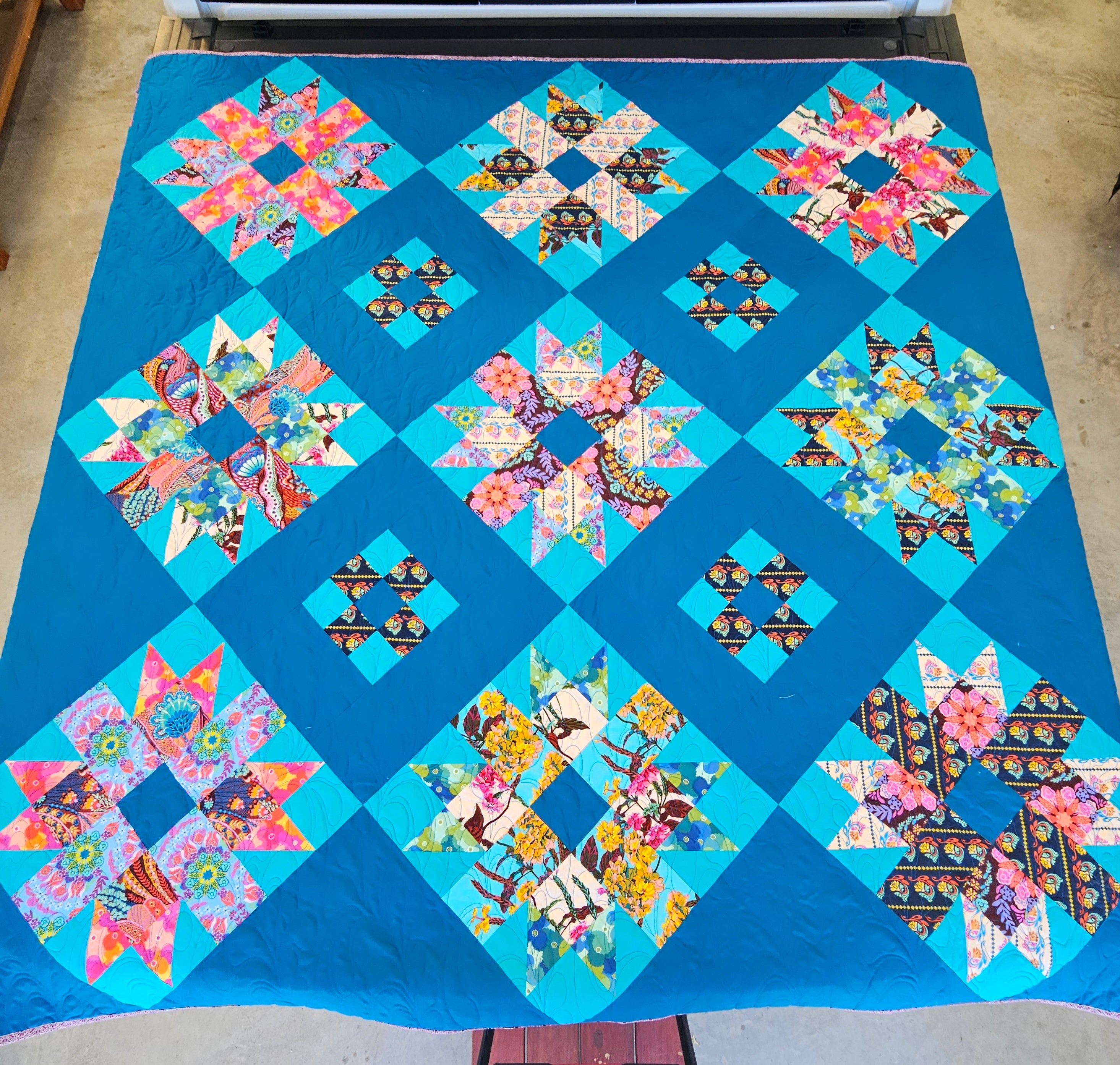 Cadbury Cream is as sweet as can be. There are so many options for making this quilt. Try making each star a solid color, you can rainbow the blocks, use a dark background and lots of low volumes. The possibilities are endless. There are no templates in this pattern!! Hope you love it as much as I do. Finished size: 75" x 85".