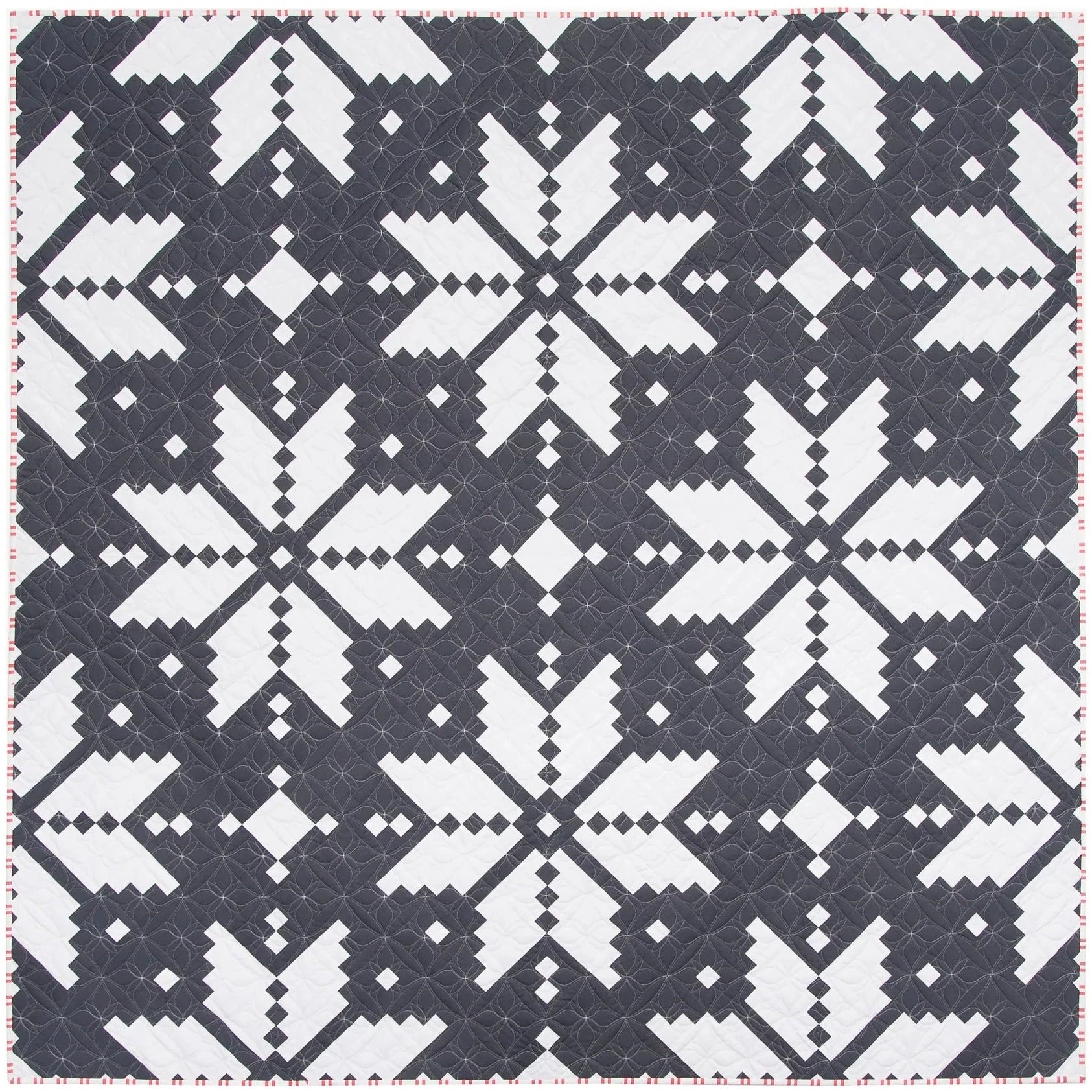 The Knitted Star is inspired by the "Fair Isle" traditional knitting technique. Create a two toned quilt, or a "Modern" version using your favorite fat quarters. For best results use non directional fabrics. Skill level: Intermediate. Quilt sample and 📷 photo by Brittany Lloyd of Lo & Behold Stitchery.