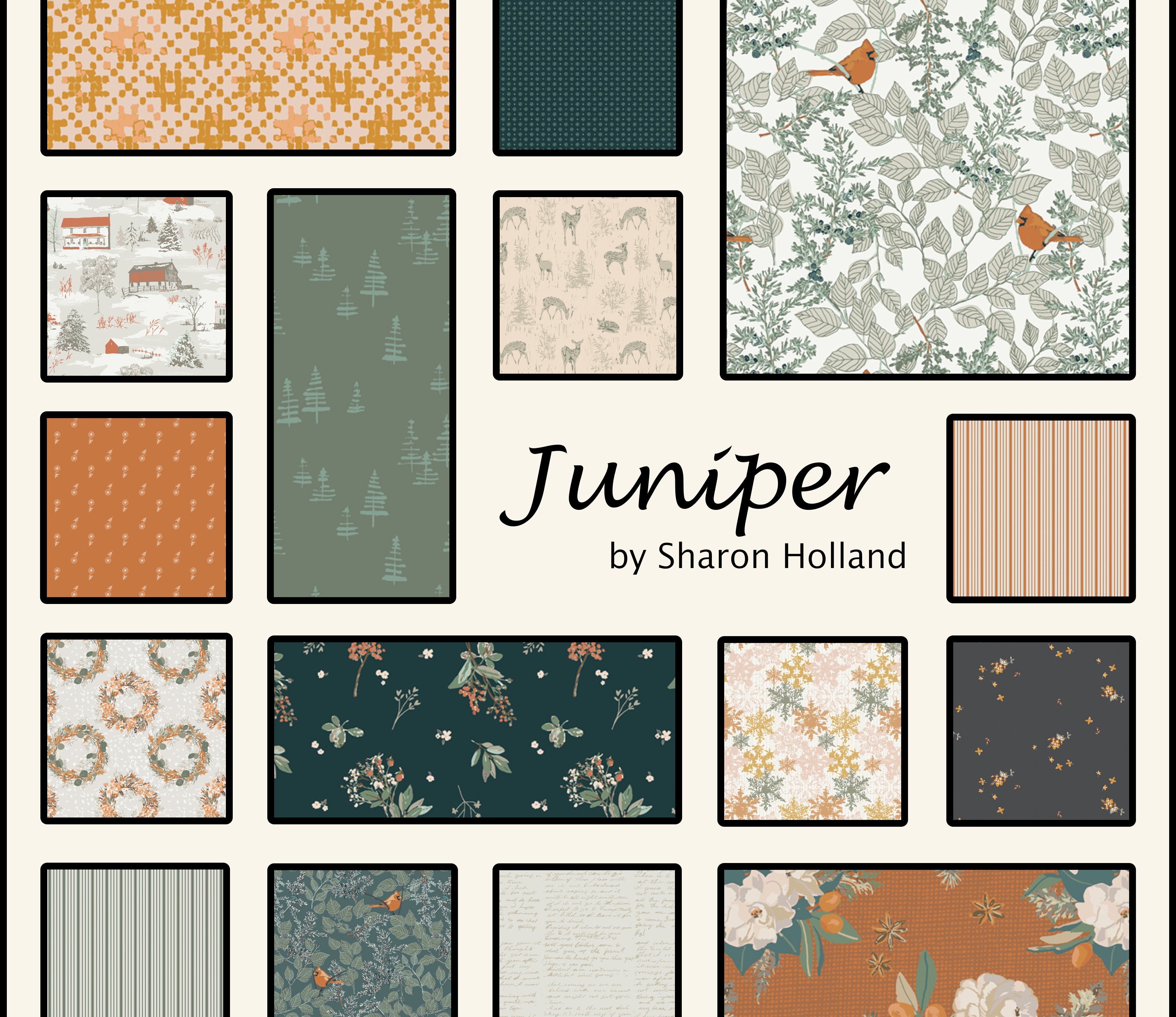 Juniper by Sharon Holland for Art Gallery Fabrics. Admire the tranquil beauty of wintertime with Juniper Ambrosial Burlap designed by Sharon Holland. Evoke the stunning natural elements with this captivating collection, boasting piney green, cinnamon spice, and cozy charcoal and white tones. Celebrate the simple pleasures and serenity of the season.