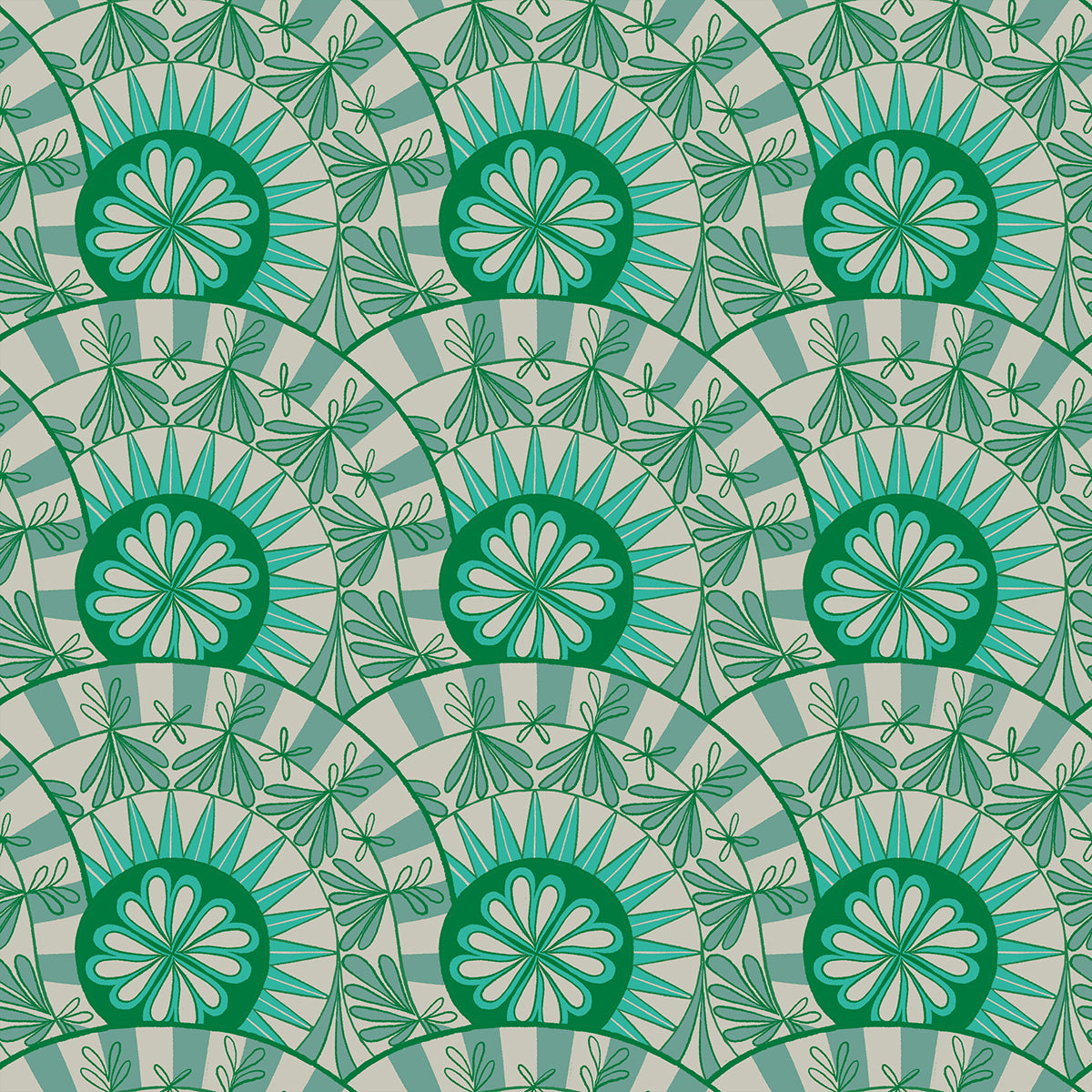 Camellia Hibiscus Watercress - 1-7/8 Yds EOB