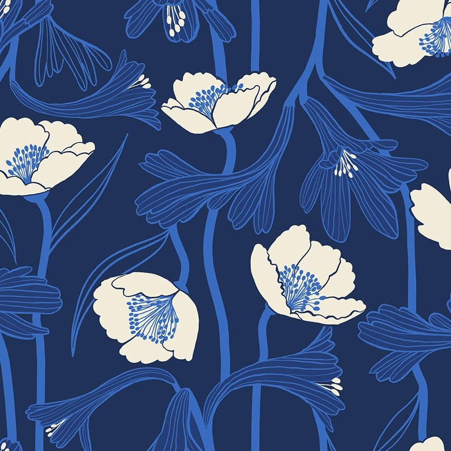 Water Water Flowers in Navy - 1-1/3 Yd EOB