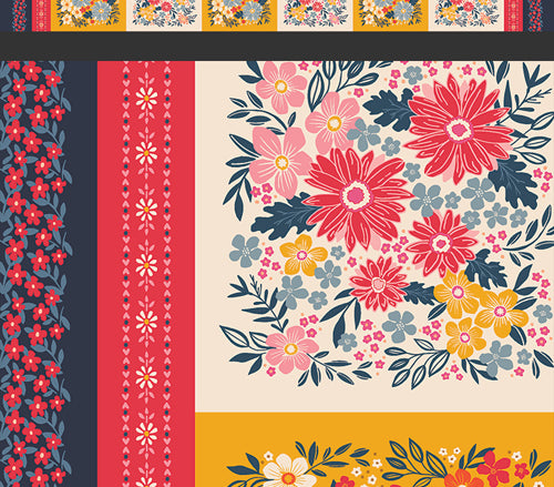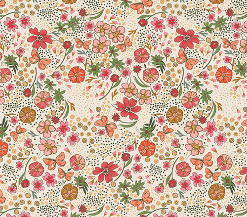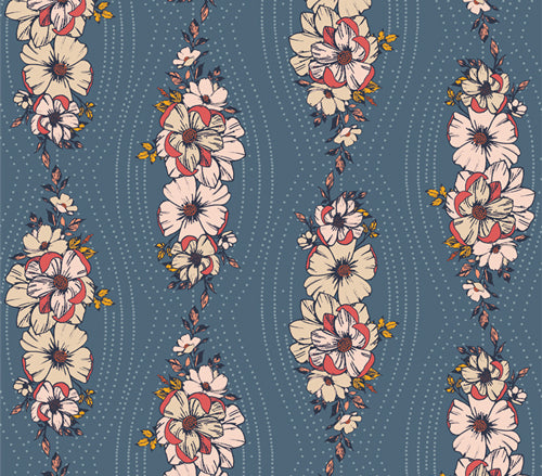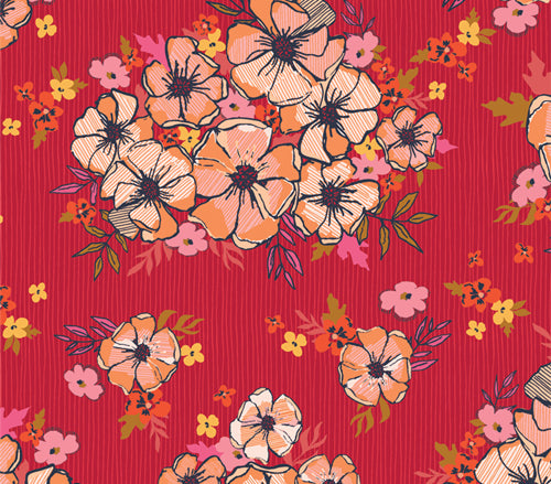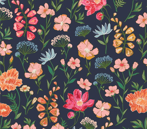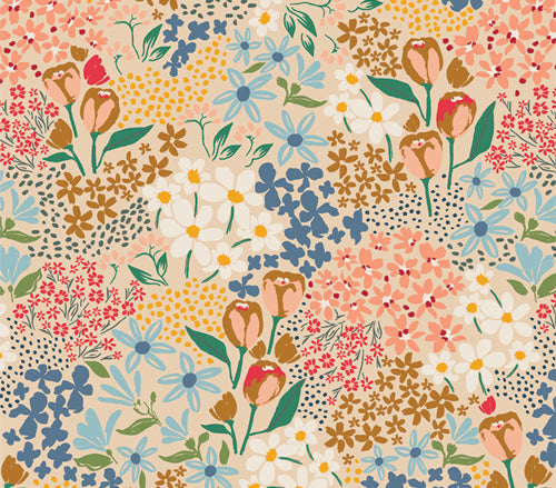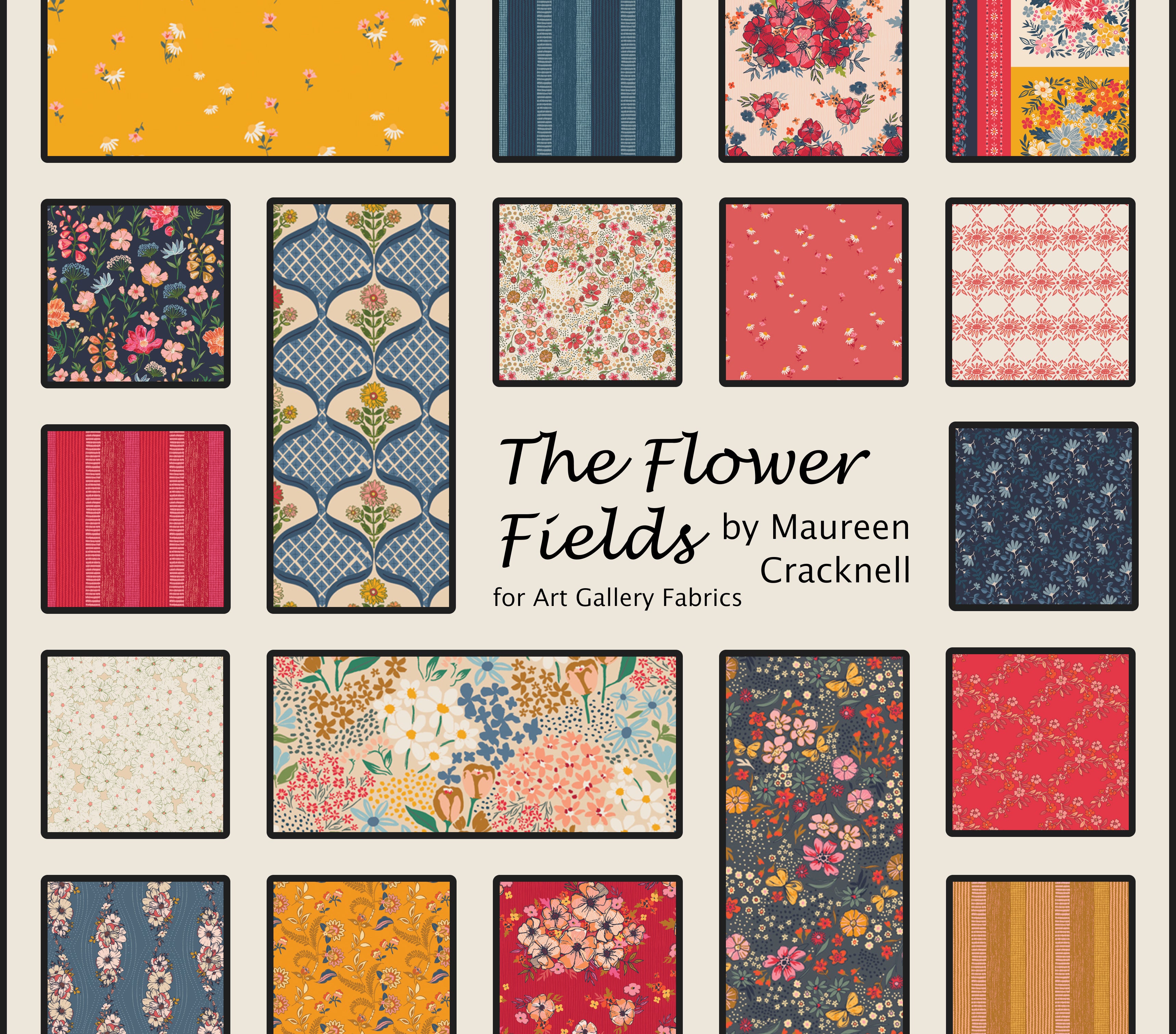 The Flower Fields by Maureen Cracknell for Art Gallery Fabrics. This captivating collection celebrates the universal love for all things floral. With vibrant colors and elegant designs, the Flower Fields is a true representation of the enchanting blooms that fill our world. Dive into a dreamland of wild beauty and enchantment in full bloom.