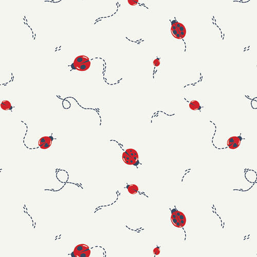 Catch & Release designed by Mister Domestic for Art Gallery Fabrics. Catch & Release represents those idyllic vacation moments together. Matthew illustrates the place where his family goes to fish and enjoy nature. Multiple shades of blue with touches of green and a few drops of ladybug red create this refreshing collection.