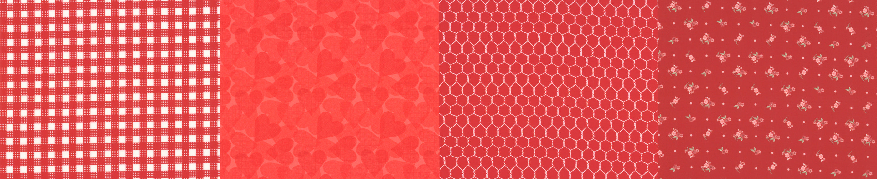 Celebrating 50 Years of Moda in Red and White; four fabrics in one blender print. Wouldn't this make a great binding?
