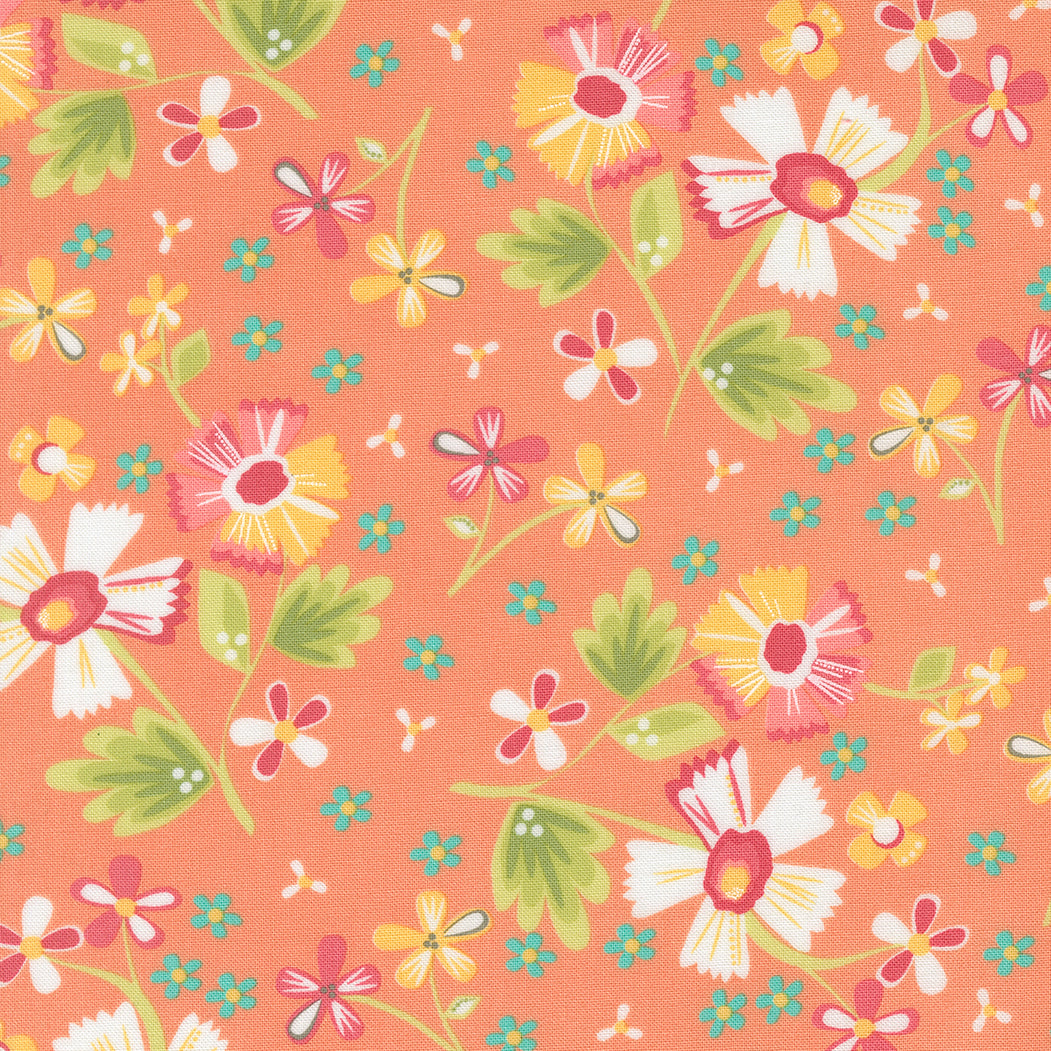Corey Yoder's In The Garden collection for Moda Fabrics brings vibrant botanical charm to your quilting projects. This is a follow up to her first line of fabric, Prairie, and features an enchanting scatter of coral, golden, and turquoise blooms that evoke the warmth of a thriving garden in full season.