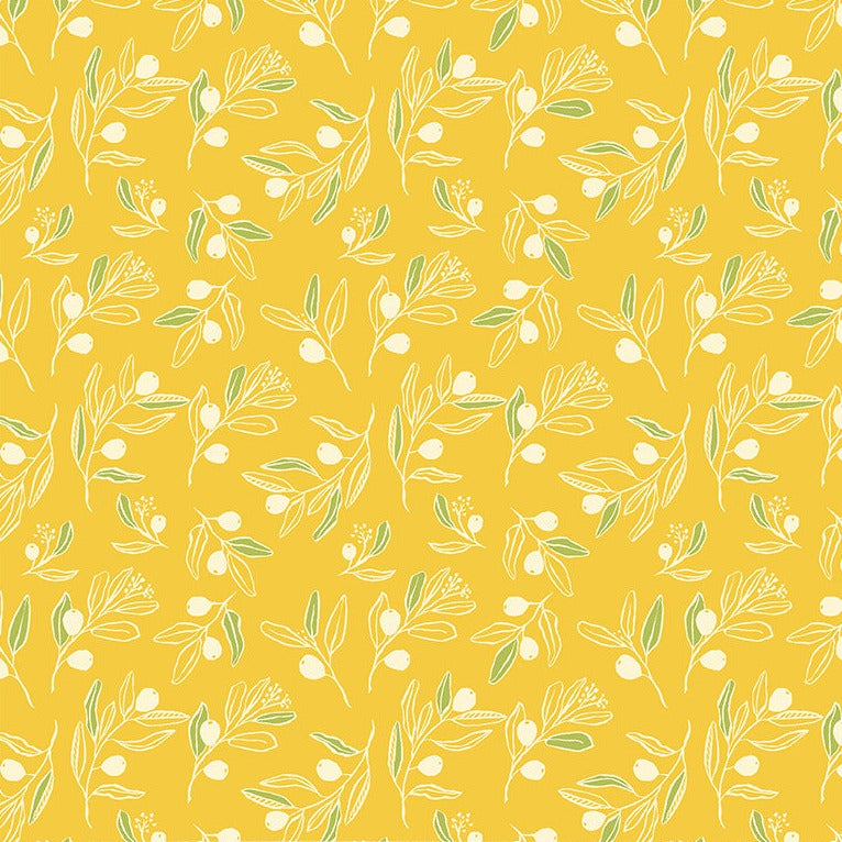 Orchard & Grove by Jennifer Moore of Monaluna for Windham Fabrics. The Orchard and Grove prints were inspired by the rolling agricultural areas of California, and the fruit trees in the designers own backyard. Her own tiny orchard is a haven for her, as well as all the bees, butterflies and birds that visit daily. This fabric is 100% Organic Cotton.