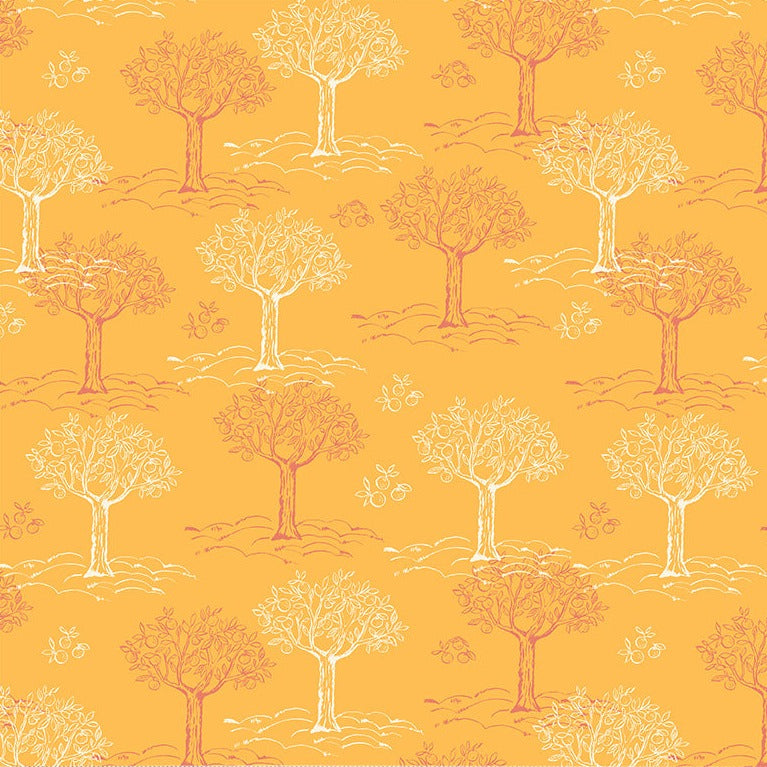 Orchard & Grove by Jennifer Moore of Monaluna for Windham Fabrics. The Orchard and Grove prints were inspired by the rolling agricultural areas of California, and the fruit trees in the designers own backyard. Her own tiny orchard is a haven for her, as well as all the bees, butterflies and birds that visit daily. This fabric is 100% Organic Cotton.