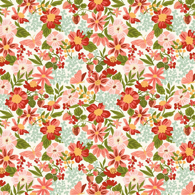 Orchard & Grove by Jennifer Moore of Monaluna for Windham Fabrics. The Orchard and Grove prints were inspired by the rolling agricultural areas of California, and the fruit trees in the designers own backyard. Her own tiny orchard is a haven for her, as well as all the bees, butterflies and birds that visit daily. This fabric is 100% Organic Cotton.