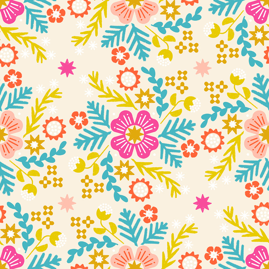 Pivot, created by designer Rashida Coleman-Hale, showcases a stunning array of modern prints including florals and geometric shapes. The collection features vibrant, eye-catching hues, and will work well alone or with additional Ruby Star Society fabrics.