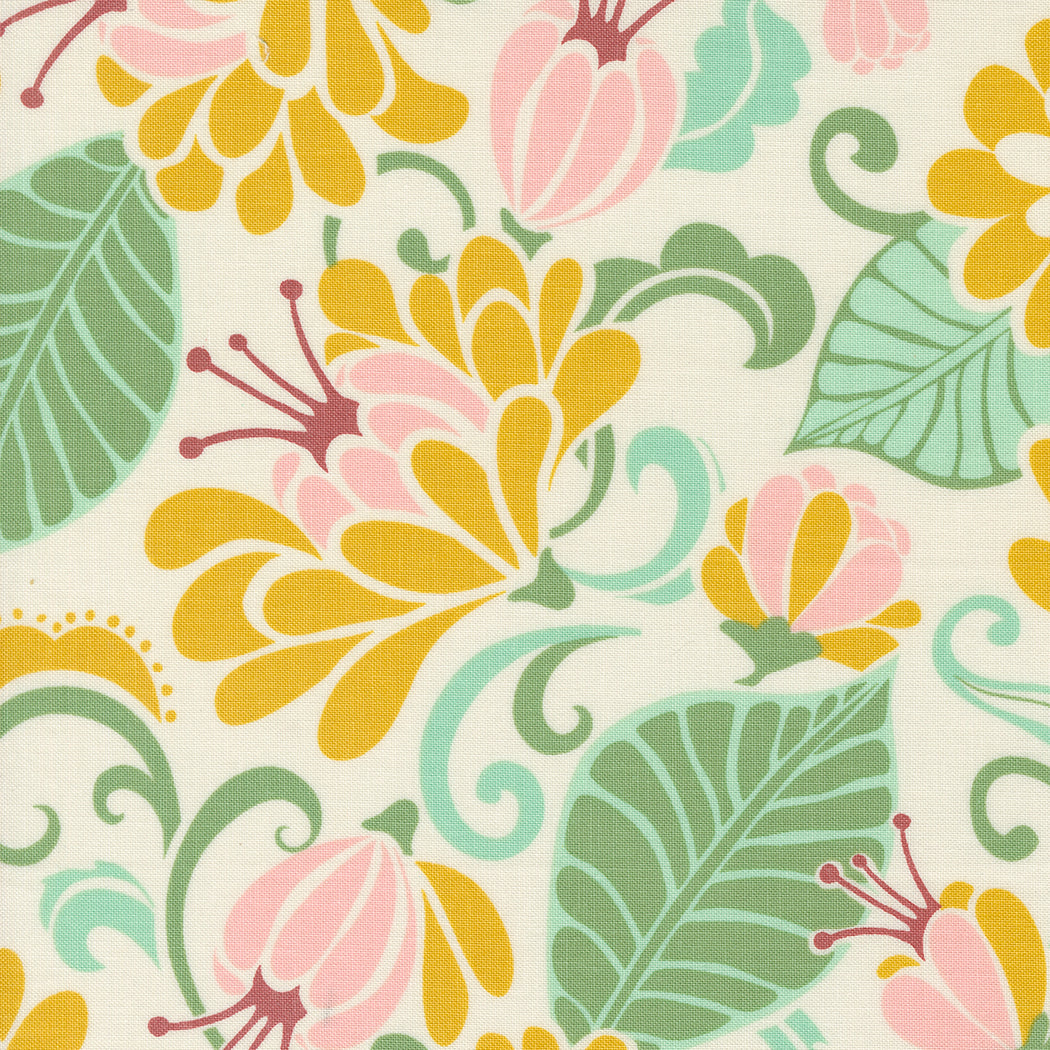 Tango by Kate Spain for Moda Fabrics. This collection features gorgeous florals and geometrics in greens, teals, reds and yellows. So vibrant you and your projects will dance!