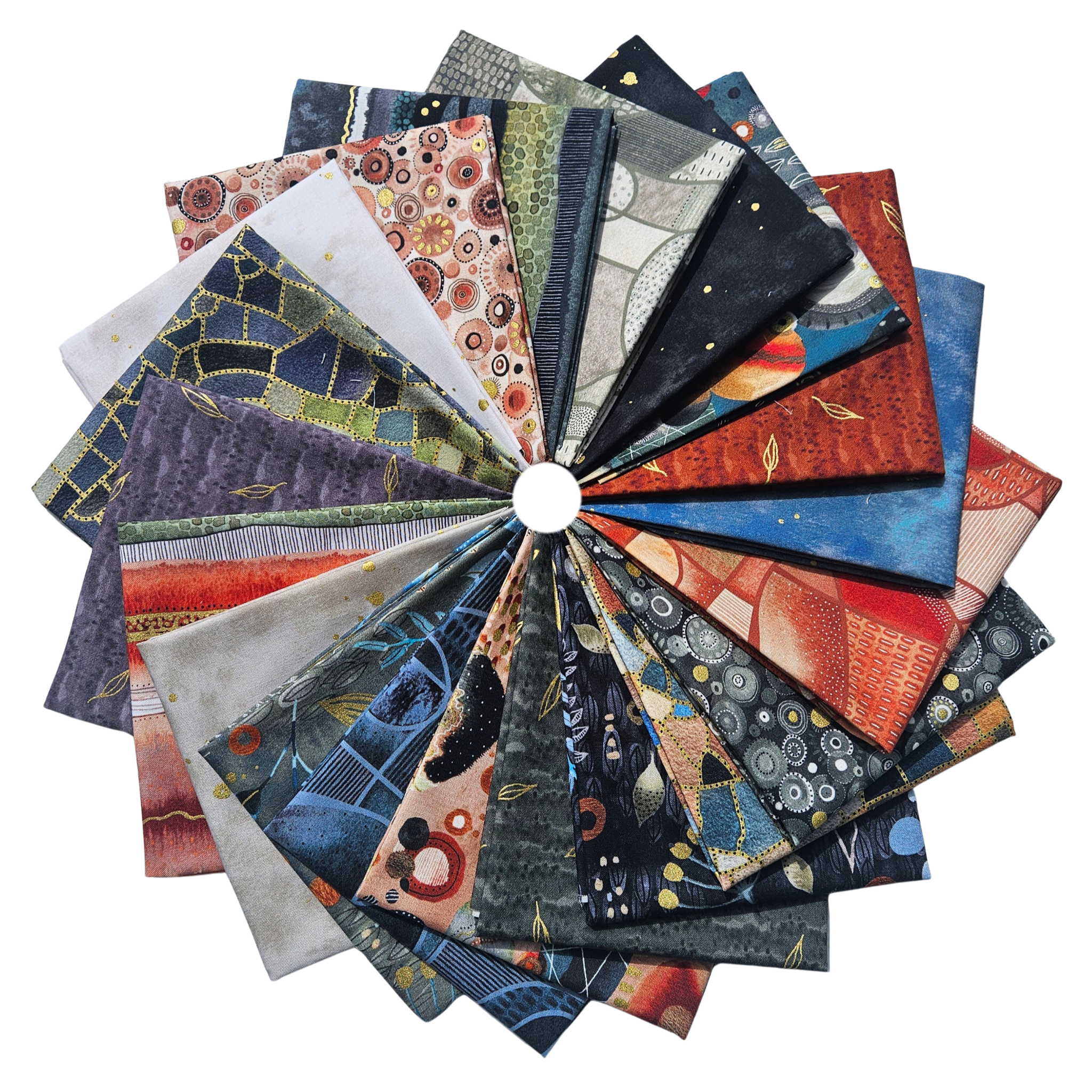Ebb & Flow de Kate Leach para Windham Fabrics muestra colores exquisitos, patrones intrincados y elegantes detalles metálicos. Kate es artista, ilustradora y educadora y le encanta embellecer sus diseños, que siempre incluyen hermosos puntos, decoraciones intrincadas y detalles dorados. Windham da vida de manera experta a la visión de Kate incorporando delicados toques metálicos que complementan perfectamente su arte. ¿El resultado? Brillo sutil pero llamativo que añade profundidad e interés a cada proyecto.