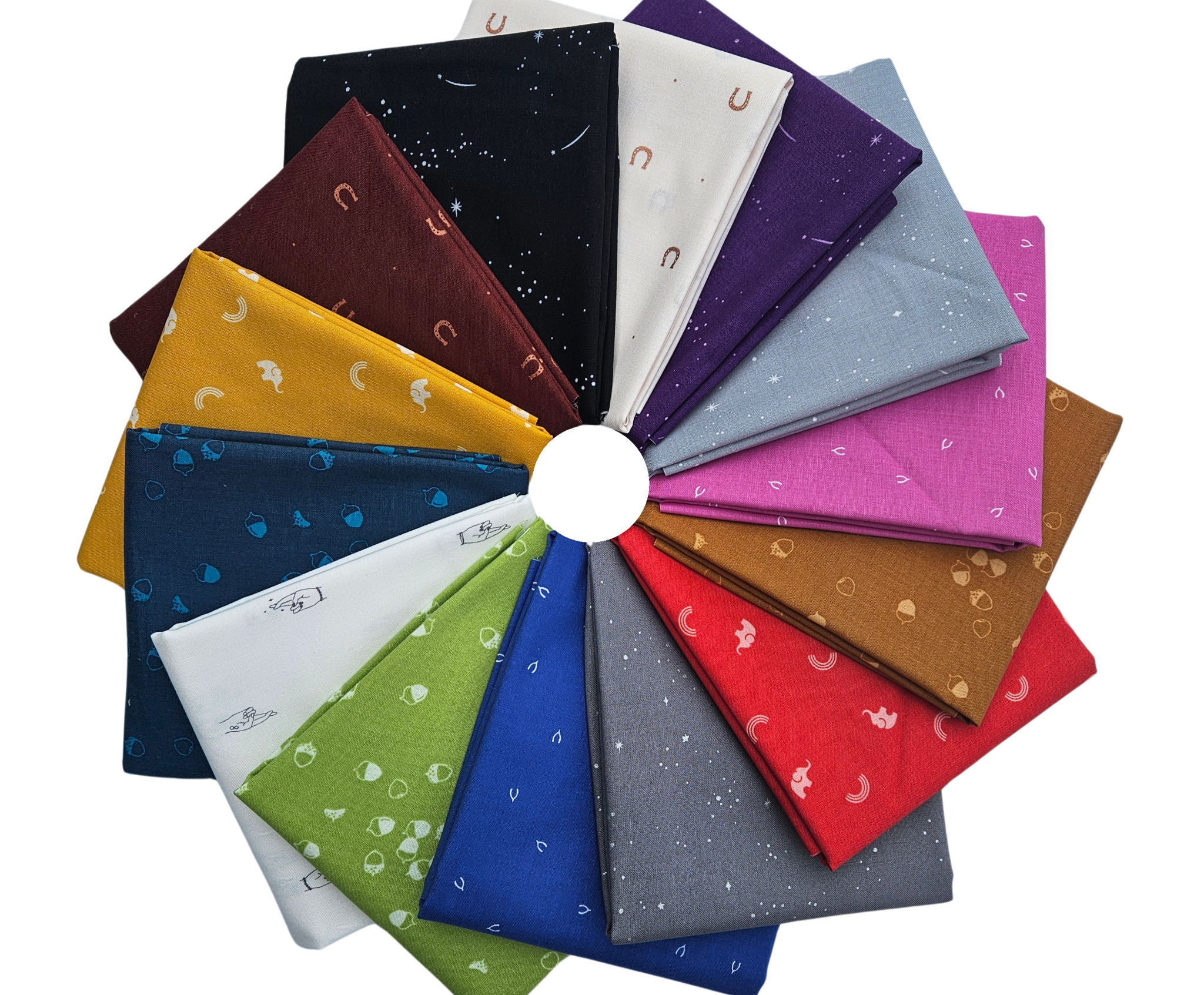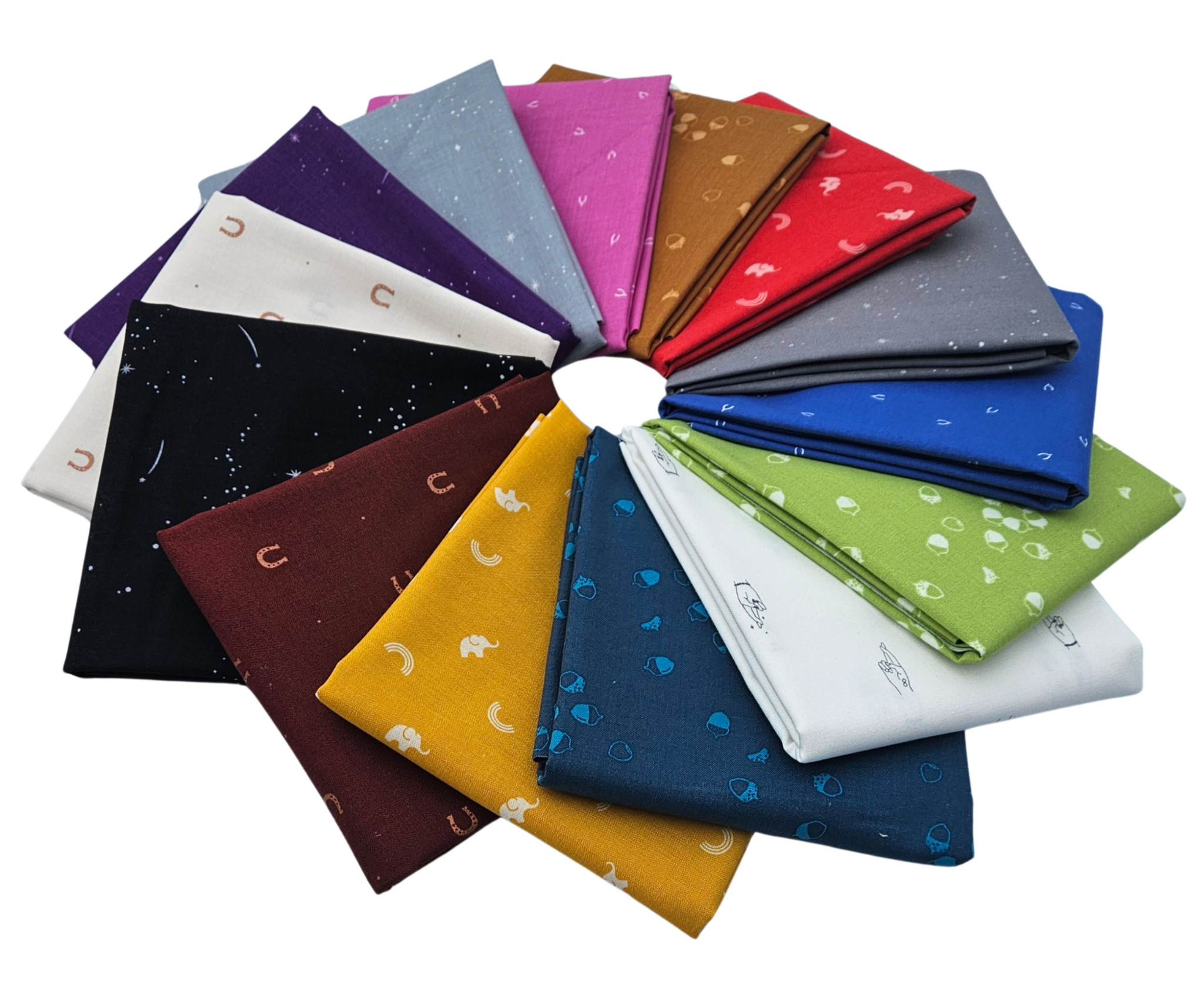 Lucky Charms diseñado por Ghazal Razavi de Figo Fabrics. Esta es una colección básica divertida que se ofrece en cinco estampados "Lucky". Cuando busques un buen básico para tu próximo proyecto, ¡prueba algo que tenga suerte! 100% algodón es ideal para coser y acolchar.