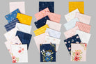 This Half Yard bundle includes 29 pieces, (18" x 42"), hand cut in our shop. The bundles include 28 pieces from the Between the Pages collection by Fran Gulick, and one from the Journal Basics Collection by J Wecker Frisch for Riley Blake Designs.