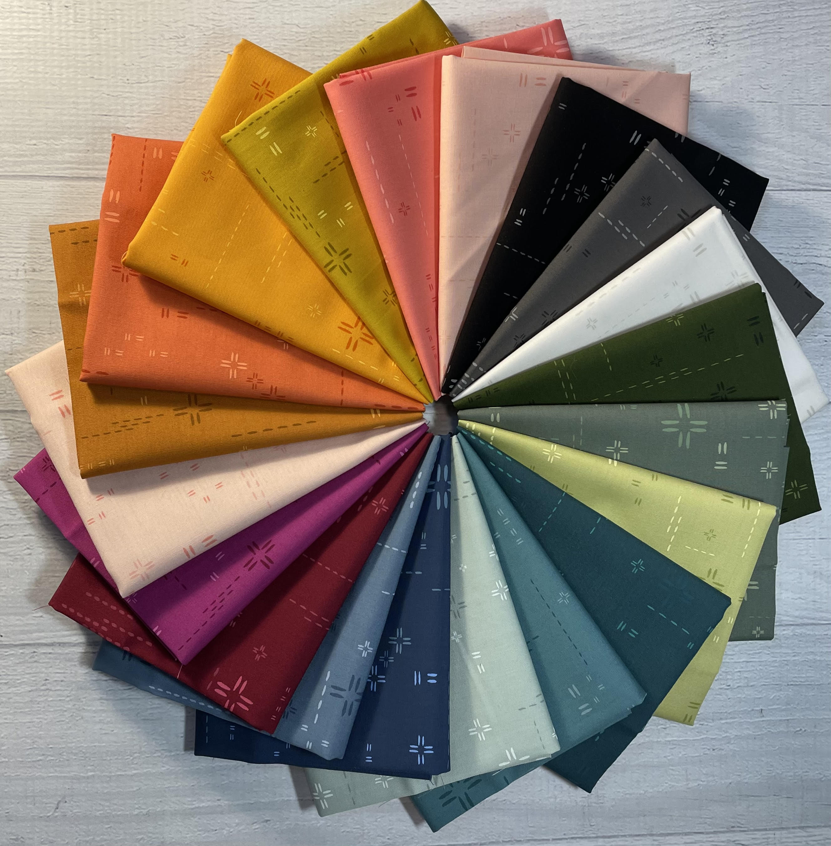 El paquete Decostitch Elements Fat Quarter incluye 20 fat quarters (18" x 21"), uno de cada estampado que se muestra en la colección Decostitch Elements diseñada por Art Gallery Fabrics.