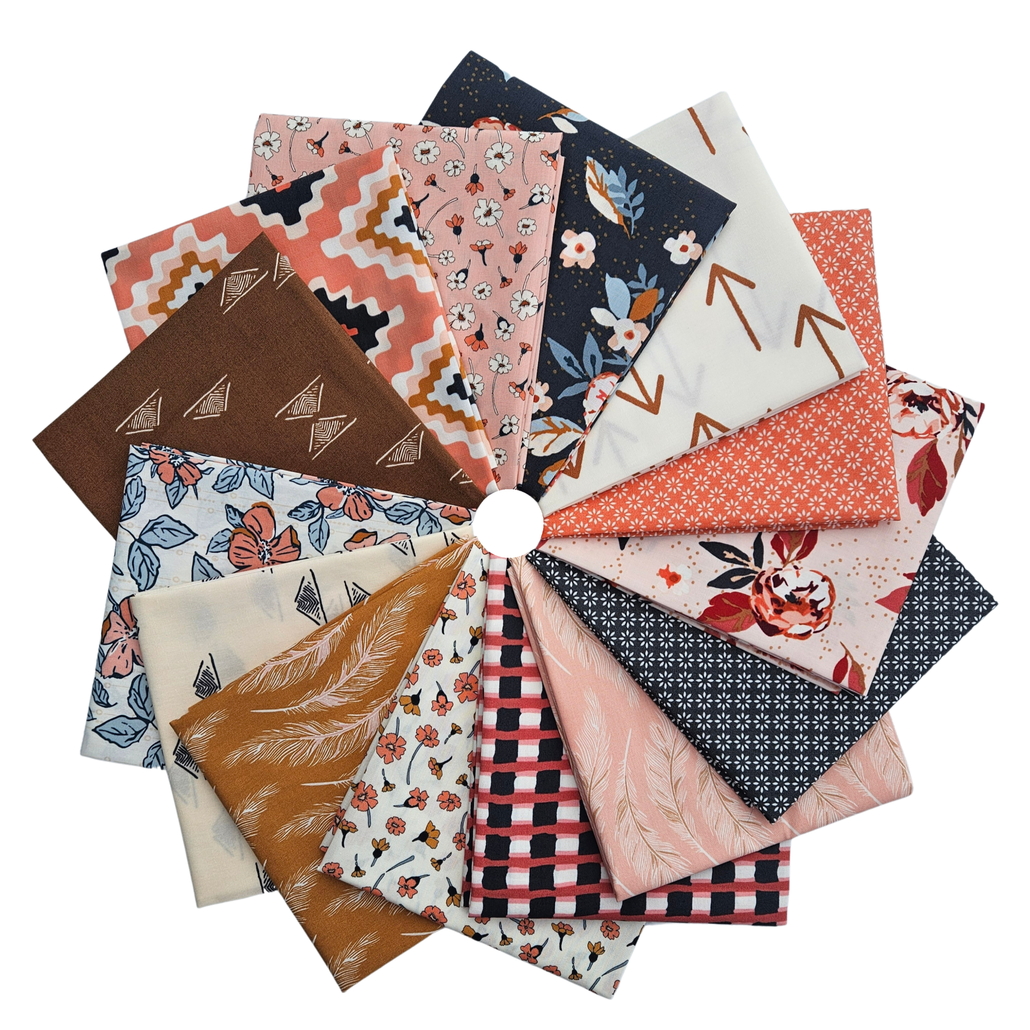 El paquete Homebody Fat Quarter incluye 16 cuartos gordos (18" x 22"), uno de cada estampado de la colección Homebody diseñado por Maureen Cracknell para Art Gallery Fabrics.