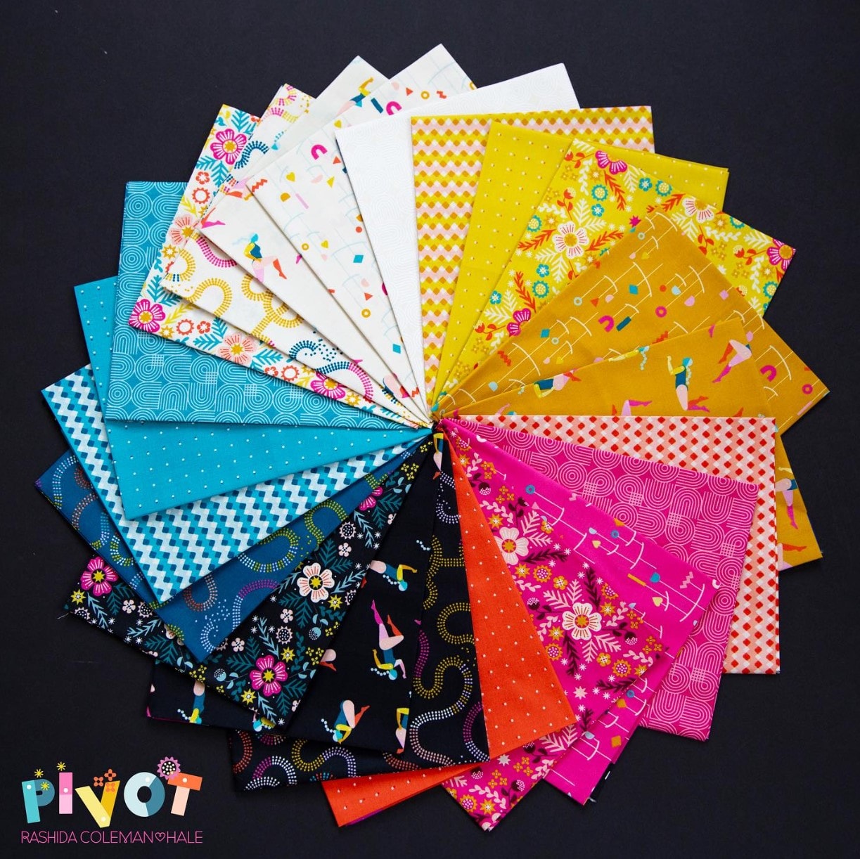 Pivot Layer Cake, created by designer Rashida Coleman-Hale, showcases a stunning array of modern prints including florals and geometric shapes. The collection features vibrant, eye-catching hues, and will work well alone or with additional Ruby Star Society fabrics. The Pivot Layer Cake includes 42, (10" x 10"), squares with duplicates of some prints.