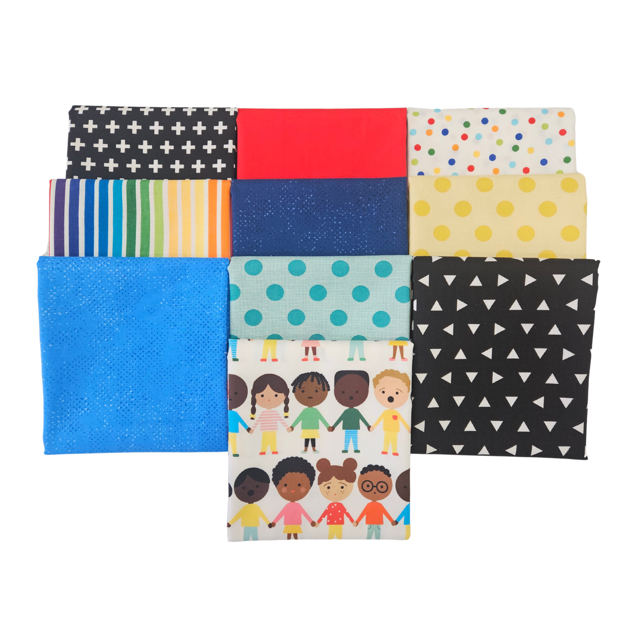 Míranos, escúchanos, ámanos diseñado por Ann Kelle para Robert Kaufman Fabrics. Junto con Remix se mezcla y brilla como un arcoíris. La tela 100% algodón es ideal para coser y acolchar.