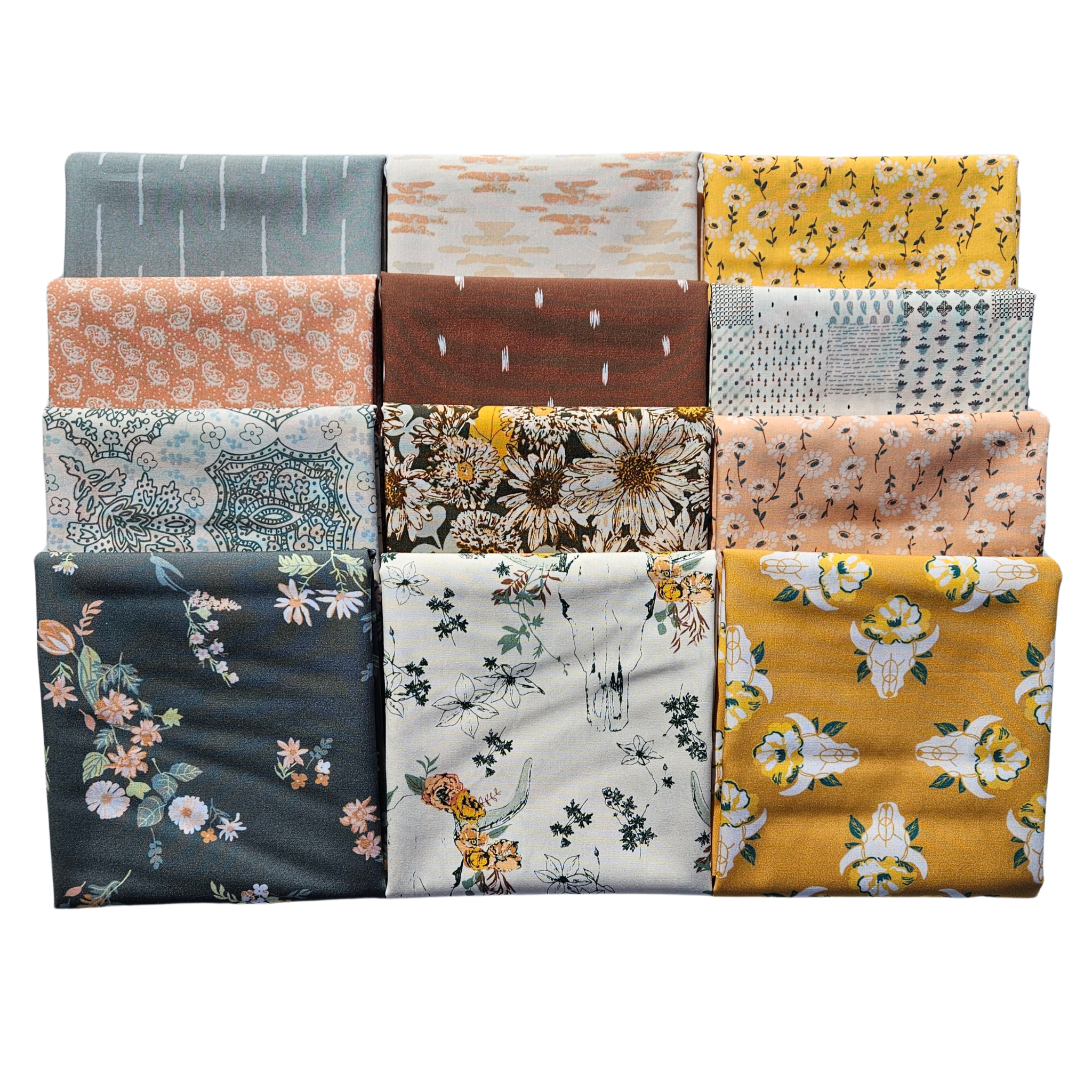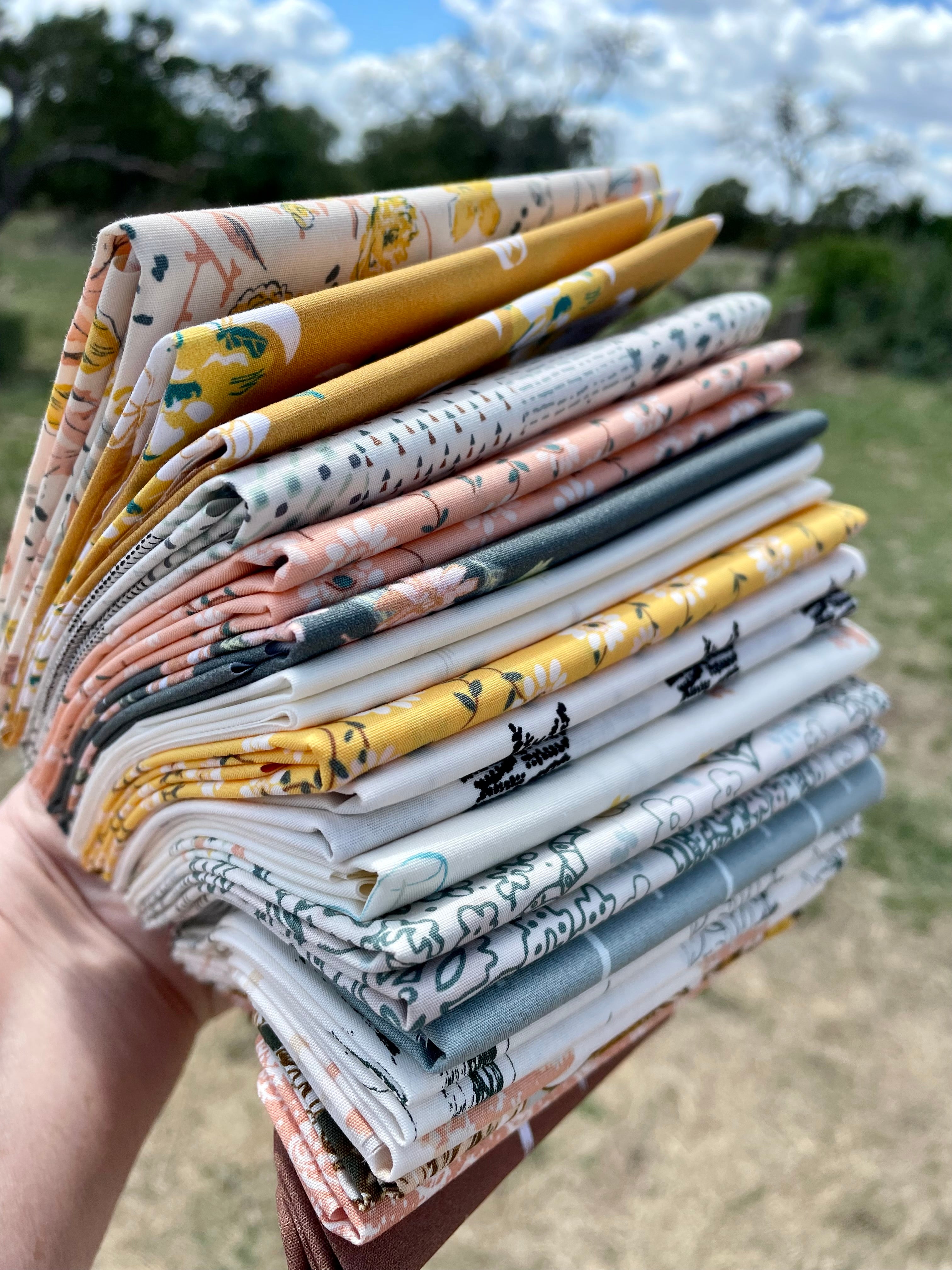 El paquete Shine On Fat Quarter incluye 16 cuartos gordos (18"x 21"); uno de cada estampado de la colección Shine On de Sharon Holland para Art Gallery Fabrics.