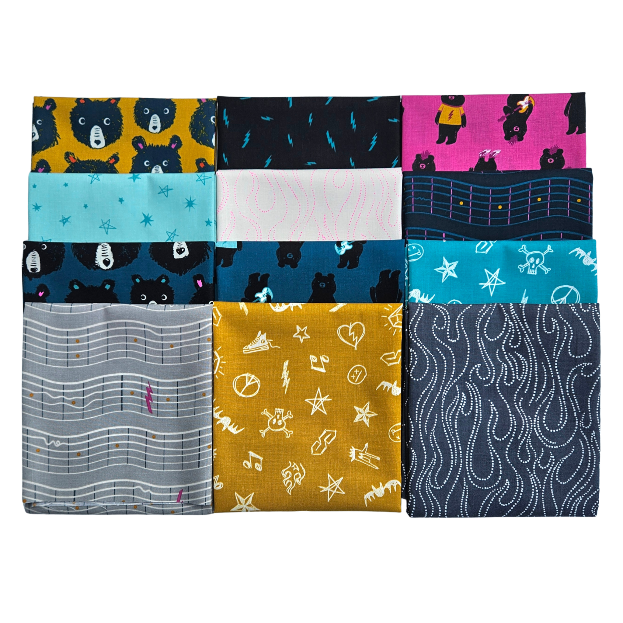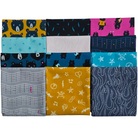 Florida diseñada por Sarah Watts de Ruby Star Society para Moda Fabrics. Florida se inspiró en la Florida que conoció en su infancia y años universitarios. Es una invitación a mirar la belleza que recuerda, lejos de las playas. Los manatíes en los canales, las garcetas, el follaje tropical y, por supuesto, las naranjas son parte de este lugar especial en el estado del sol.