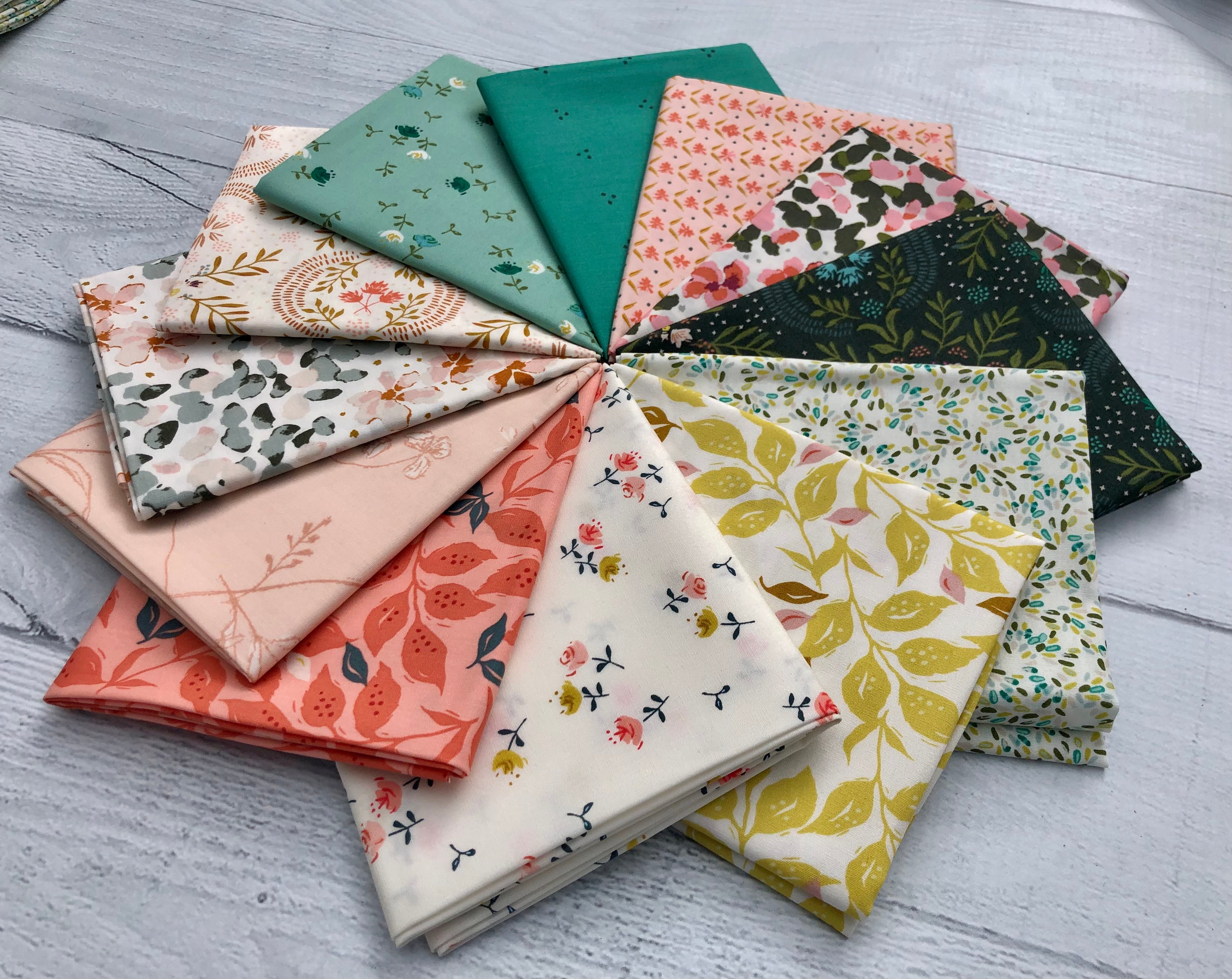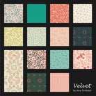 El paquete Velvet Half Yard incluye 12 cortes de media yarda cortados a mano (18" x 44"), uno de cada estampado de la colección Velvet diseñada por Amy Sinibaldi para Art Gallery Fabrics.