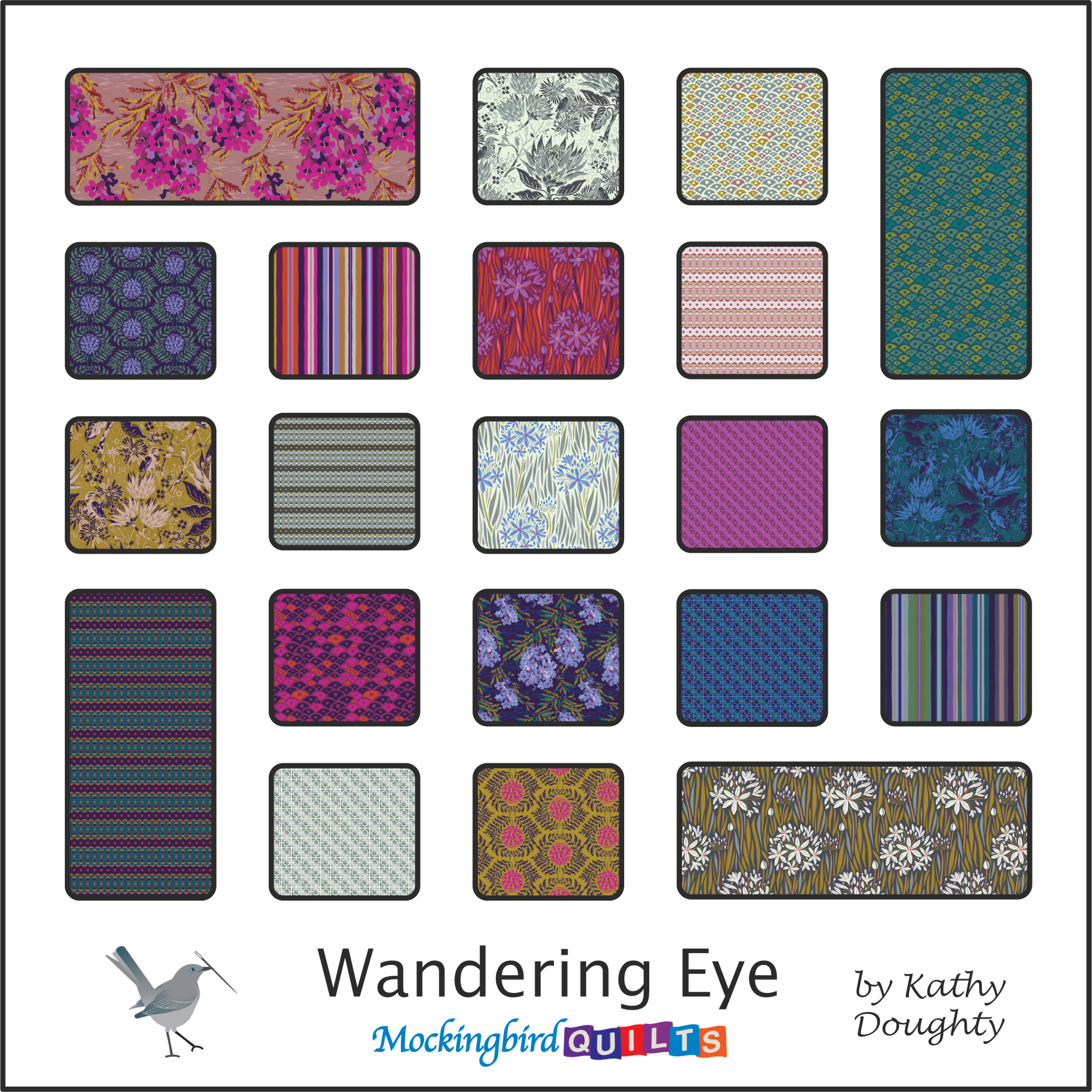 Bocetos afines de Kathy Doughty para Figo Fabrics. Este listado es para una pieza de 55" que es el extremo del perno.