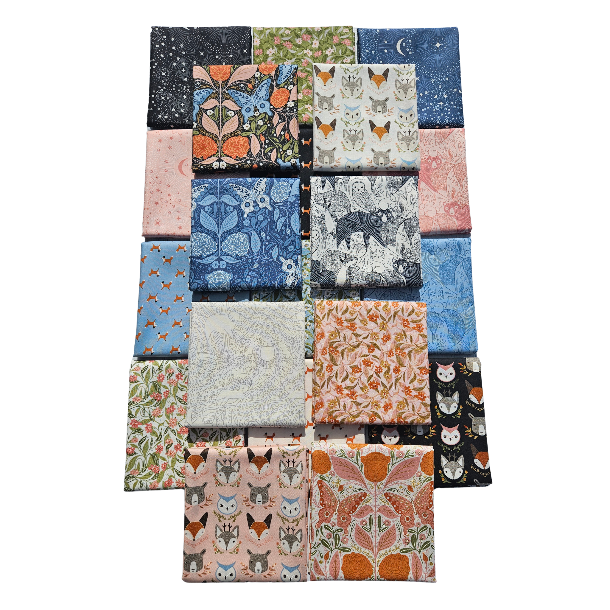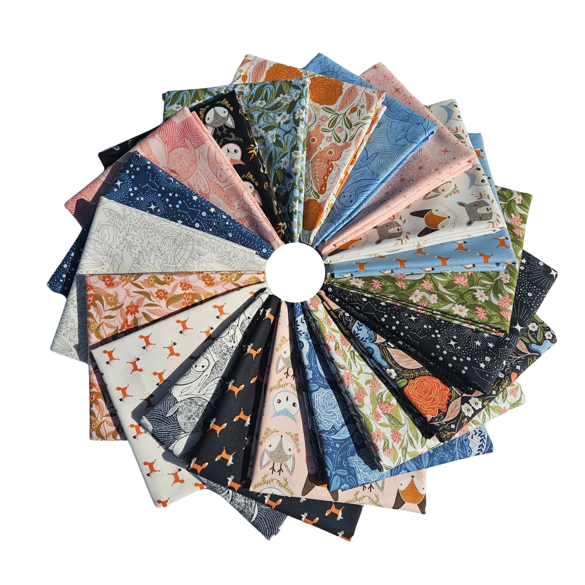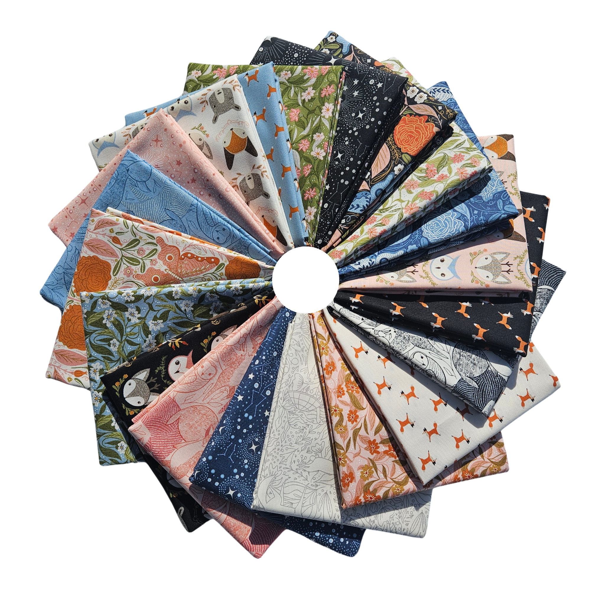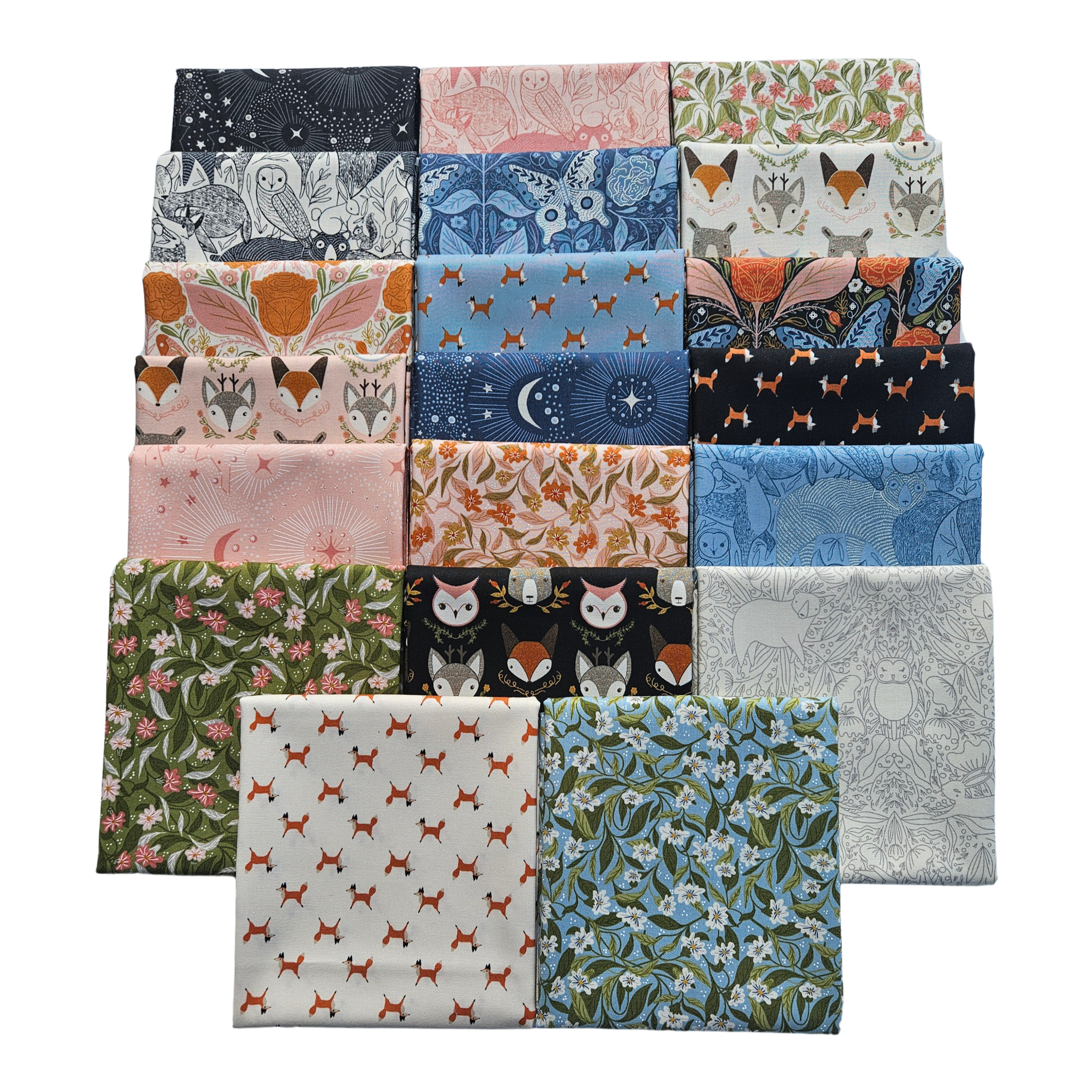 El paquete Dwell in Possibility Fat Quarter incluye 33 cuartos gordos (18" x 22"), uno de cada estampado de la colección Dwell in Possibility de Gingiber para Moda Fabrics. El Panel está disponible para su compra por separado.