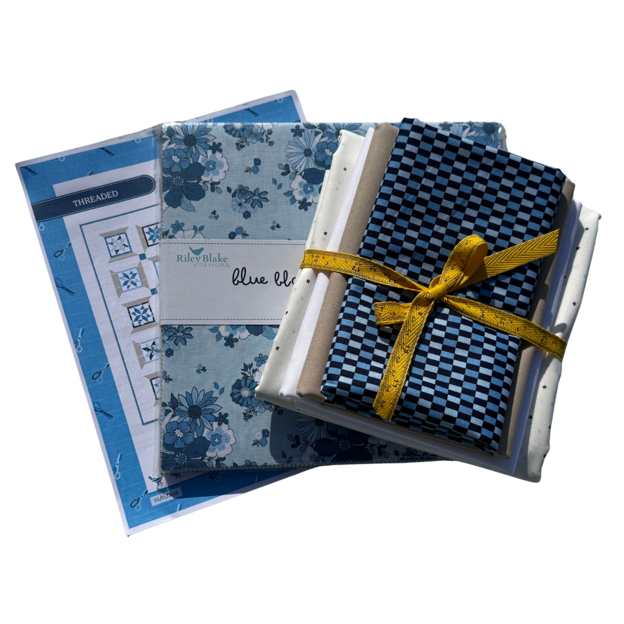 Los kits completos de colchas incluyen patrón, tela para la parte superior y encuadernación. La tela de respaldo se vende por separado.