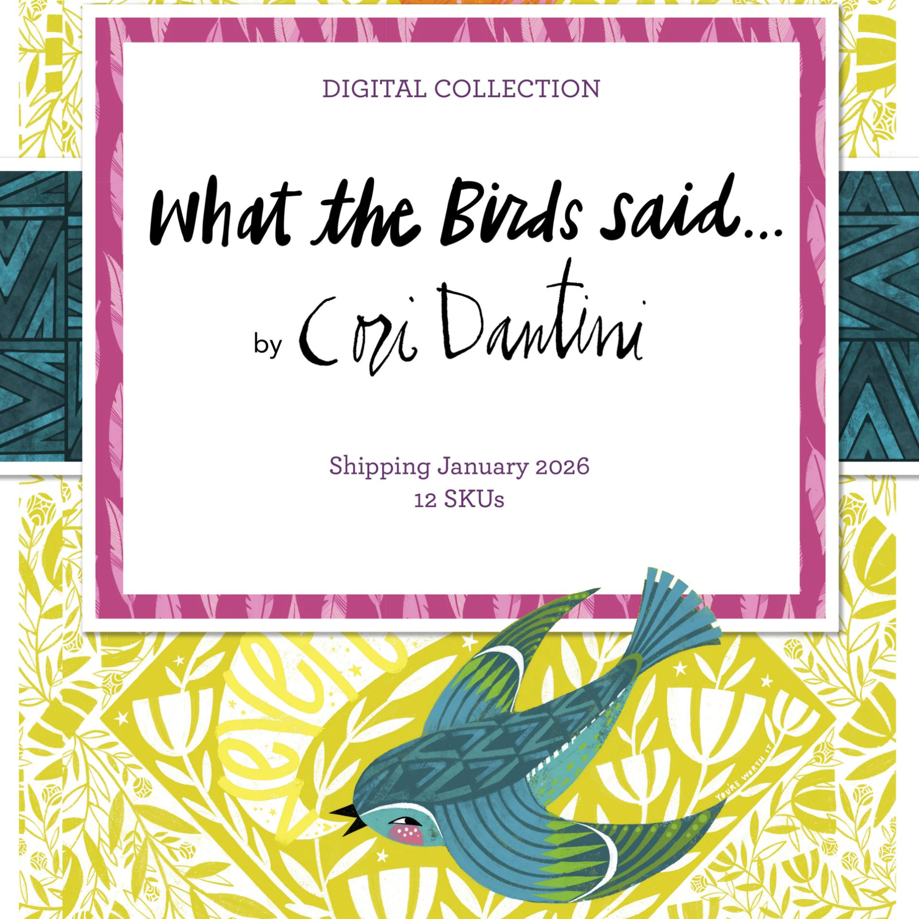 What the Birds said is inspired by the wild, free spirit of birds-they are small but courageous. They are so very good at heart, and they are also filled with an unyielding perseverance for life. There is so much to celebrate in their tiny natures! May we all strive to stay wild yet innately good, just like the birds. OOx, Cori