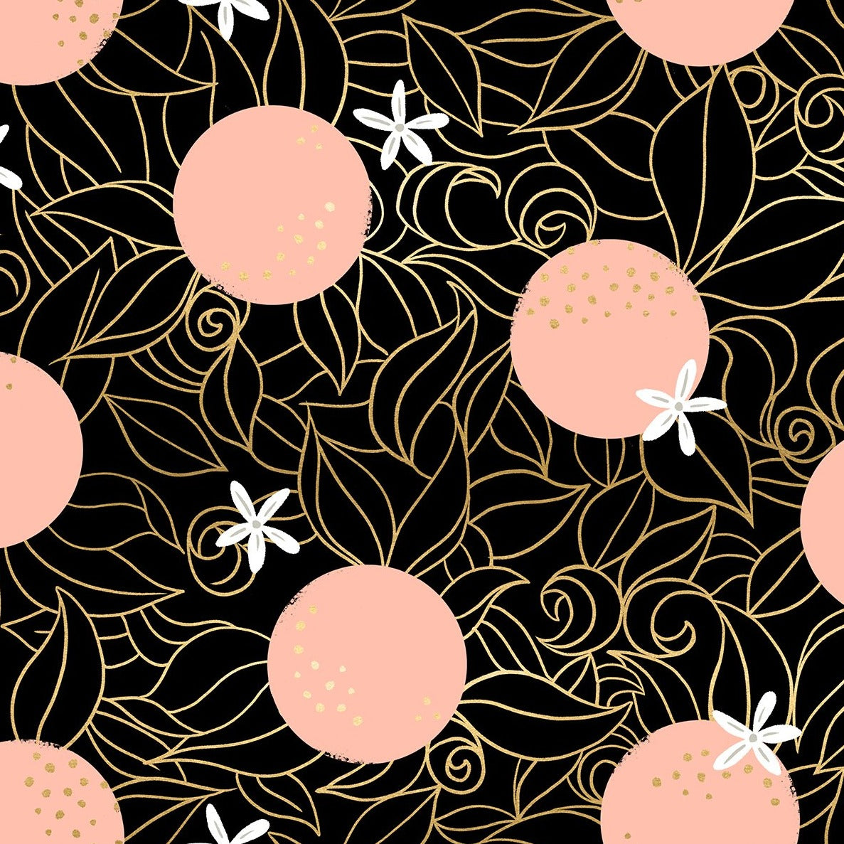 Florida diseñada por Sarah Watts de Ruby Star Society para Moda Fabrics. Florida se inspiró en la Florida que conoció en su infancia y años universitarios. Es una invitación a mirar la belleza que recuerda, lejos de las playas. Los manatíes en los canales, las garcetas, el follaje tropical y, por supuesto, las naranjas son parte de este lugar especial en el estado del sol.