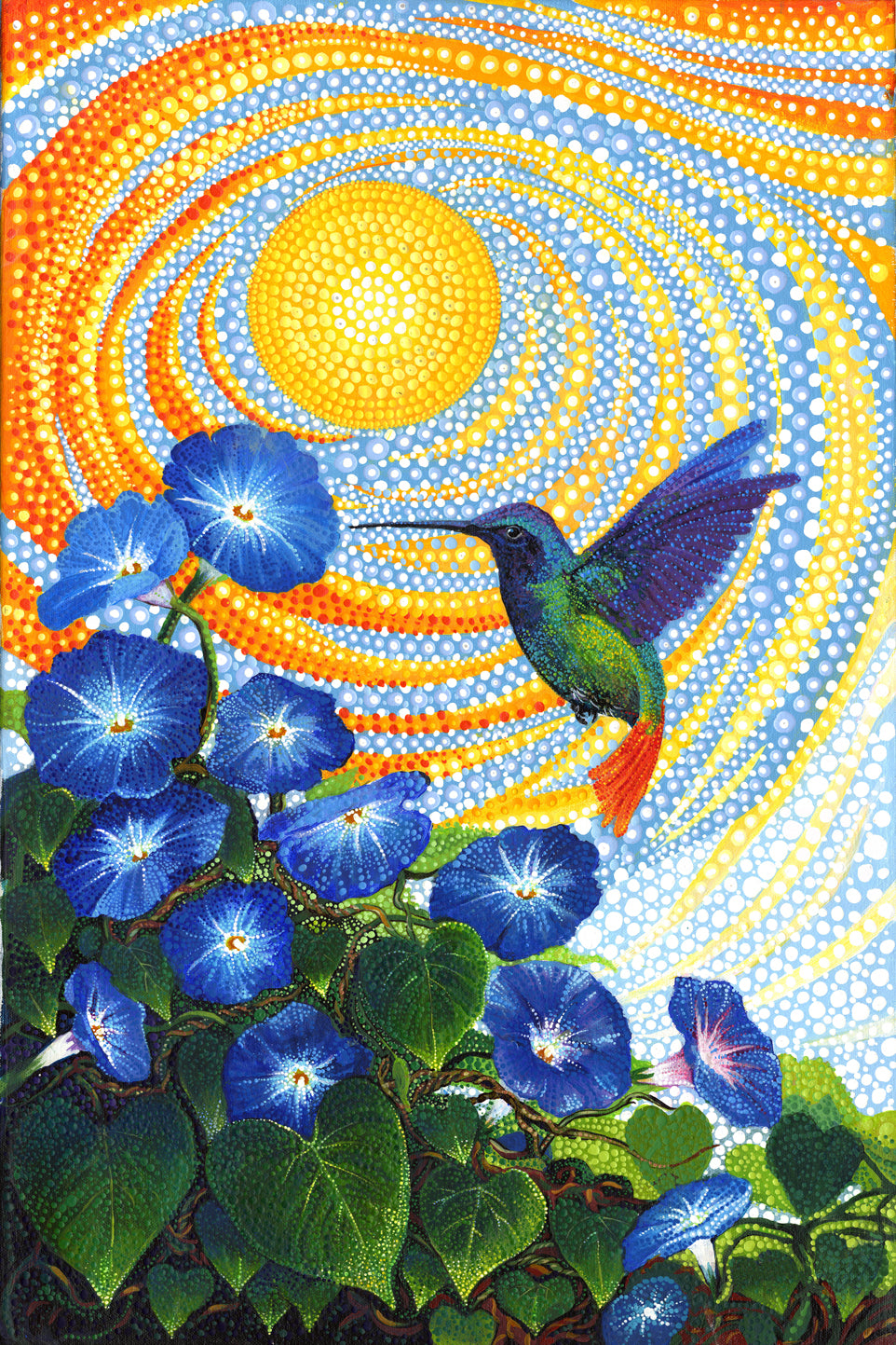 Bluebonnet Path est un modèle gratuit de Moda Fabrics présentant Dreamscapes d'Ira Kennedy. L'exemple montre le panneau Home Place, mais pourrait être remplacé par le panneau Hummingbird. La courtepointe finie mesure 51 x 66 et serait magnifique avec l'un ou l'autre panneau.