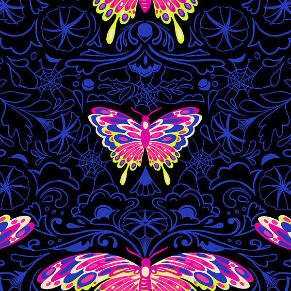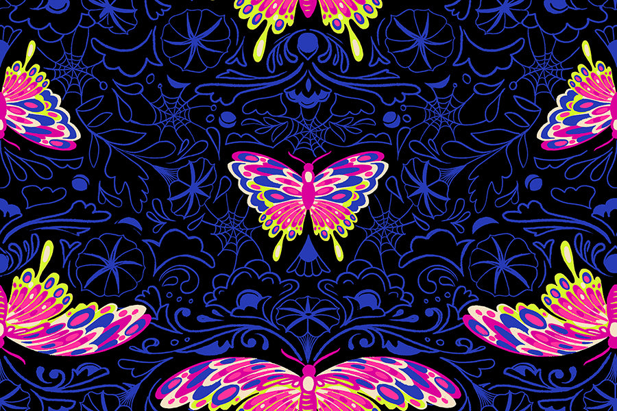 Glow Garden by Sarah Watts is a collection inspired by the magical, phosphorescent vibes of a fairy garden and a neon palette that glows in the dark. Each print captures the wild blend of nature and luminescence, bringing the thrill of a blacklight roller rink and the enchantment of a night garden.