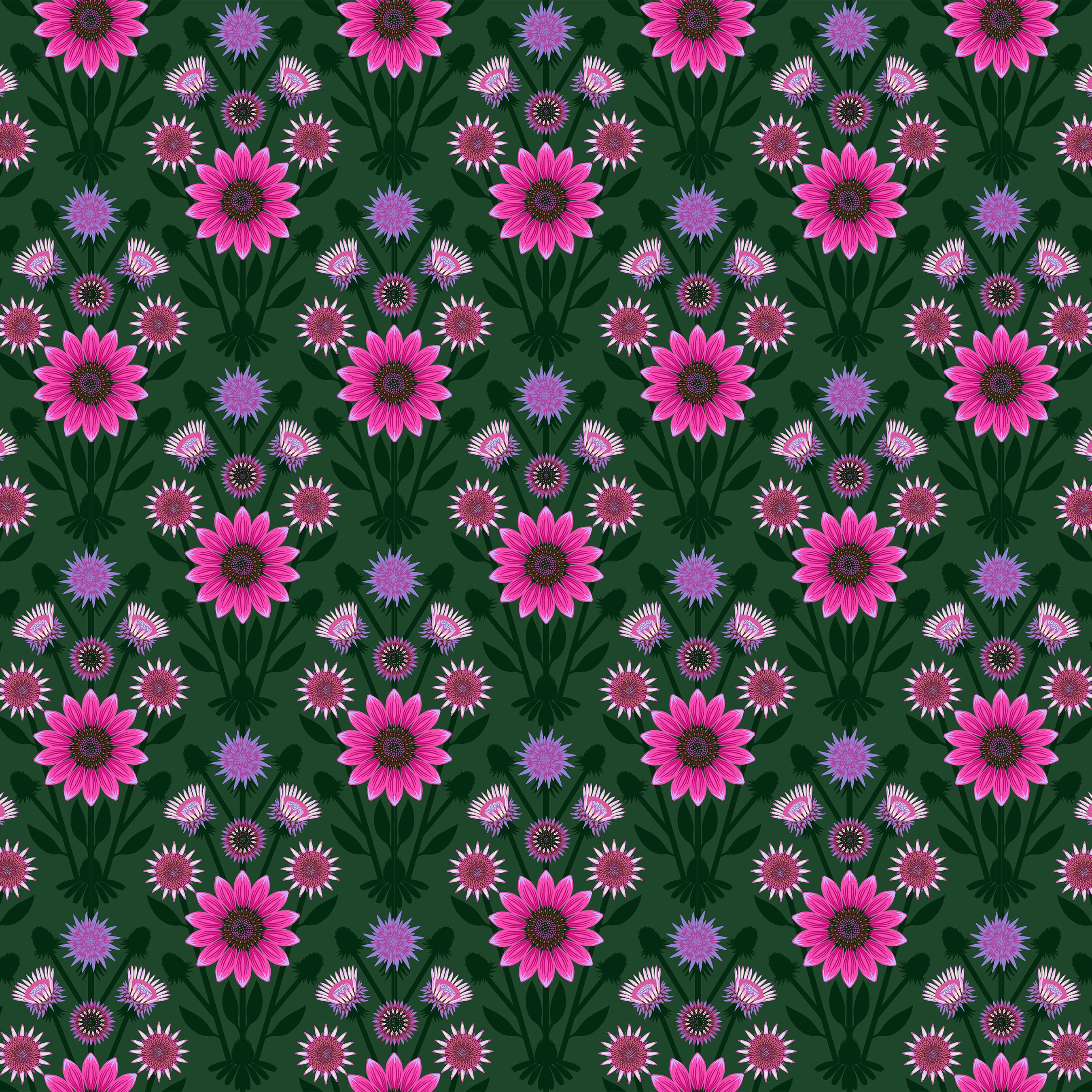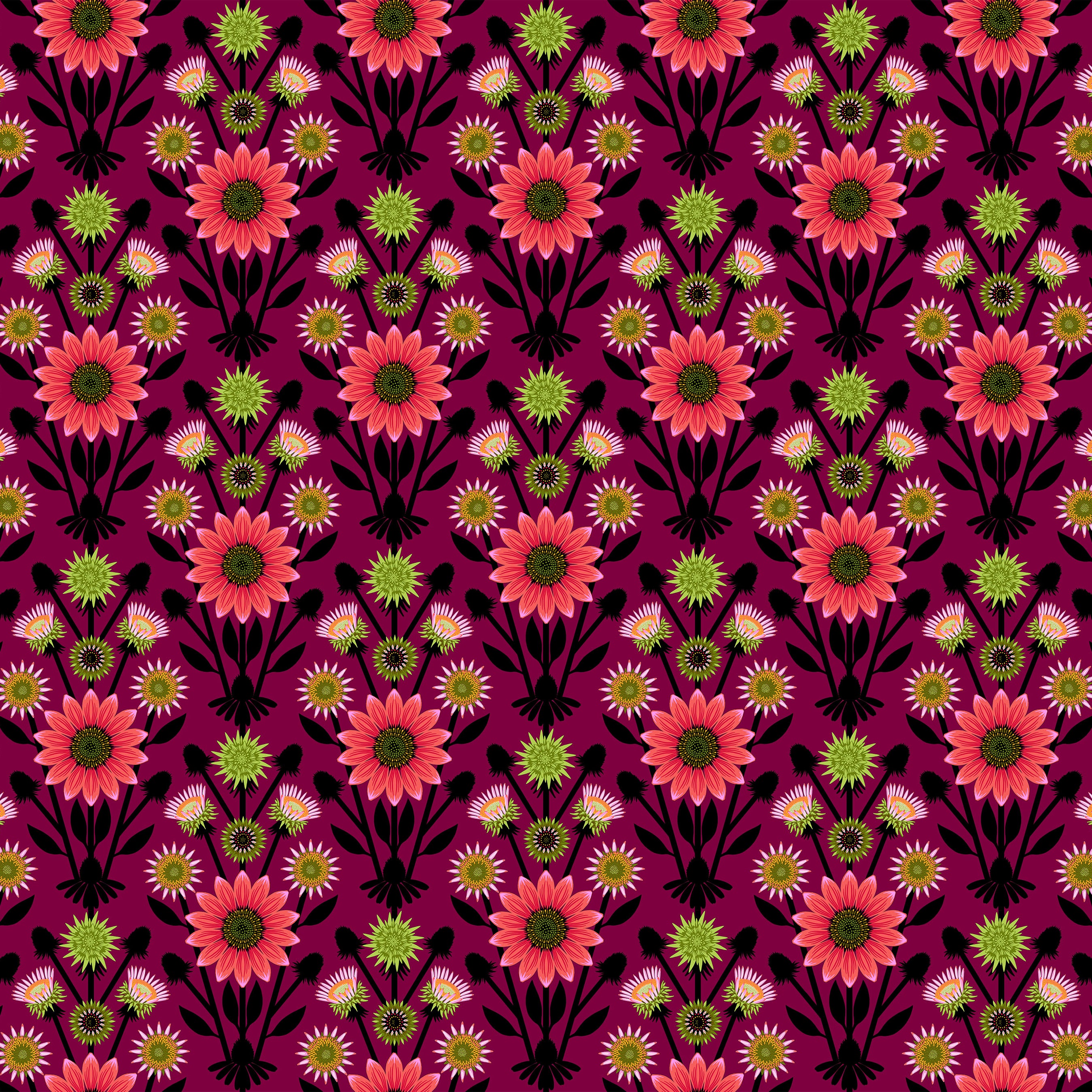 Iconic by Anna Maria Parry.  For floral enthusiasts, there's always one special bloom that seems to return our gaze with warmth. The Iconic collection presents straightforward floral portraits designed for versatile project integration.  Pansies, Strawflowers, Daffodils, and Forget-me-nots in a consistent repeat, while showcasing the beautiful life cycle of the Echinacea flower in the distinctive Lifespan design.