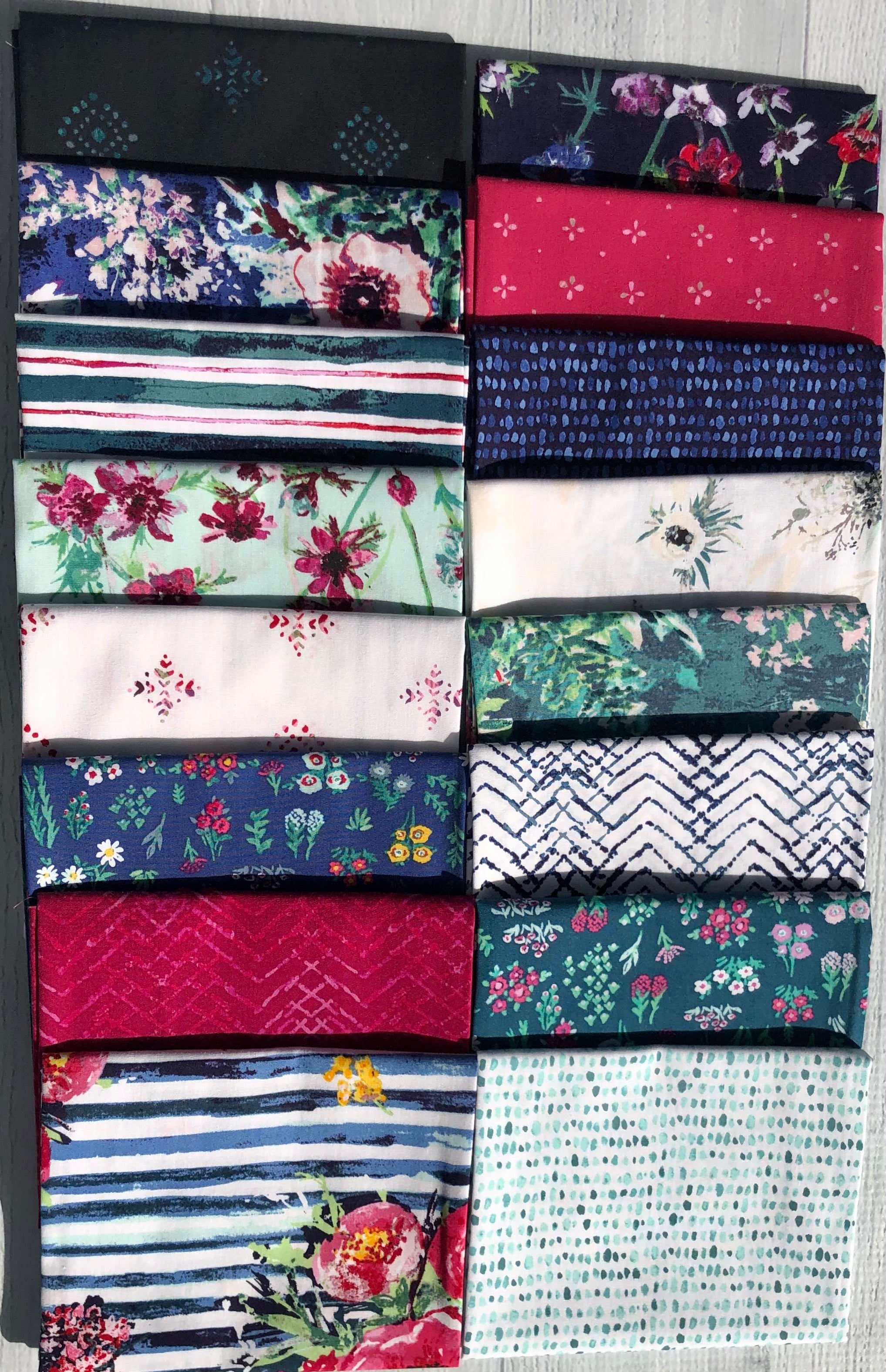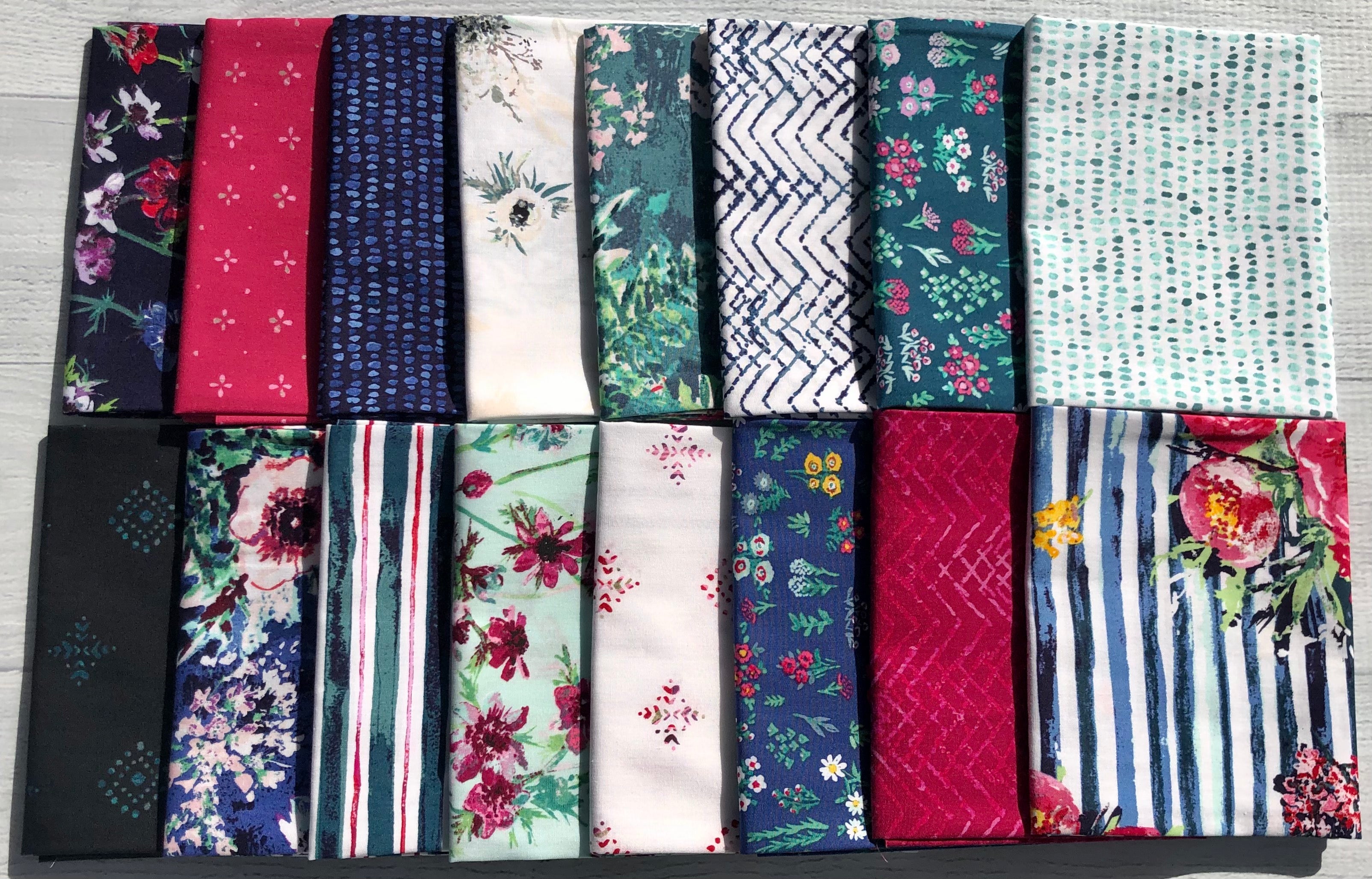 Le lot Aquarelle Half Yard comprend 16 coupes d'un demi-mètre (18" x 44"), une de chaque impression de la collection Aquarelle conçue par Katarina Roccella pour Art Gallery Fabrics.