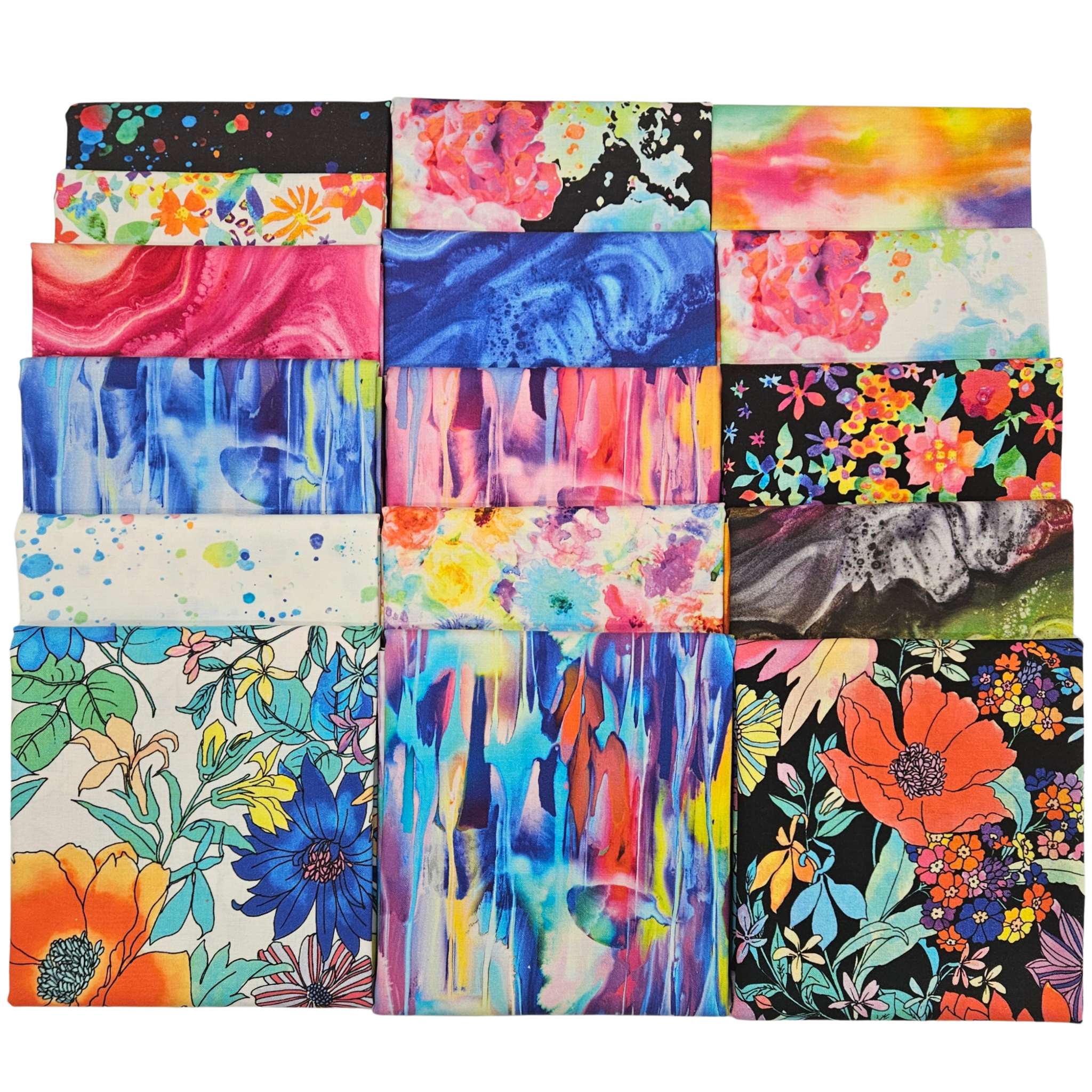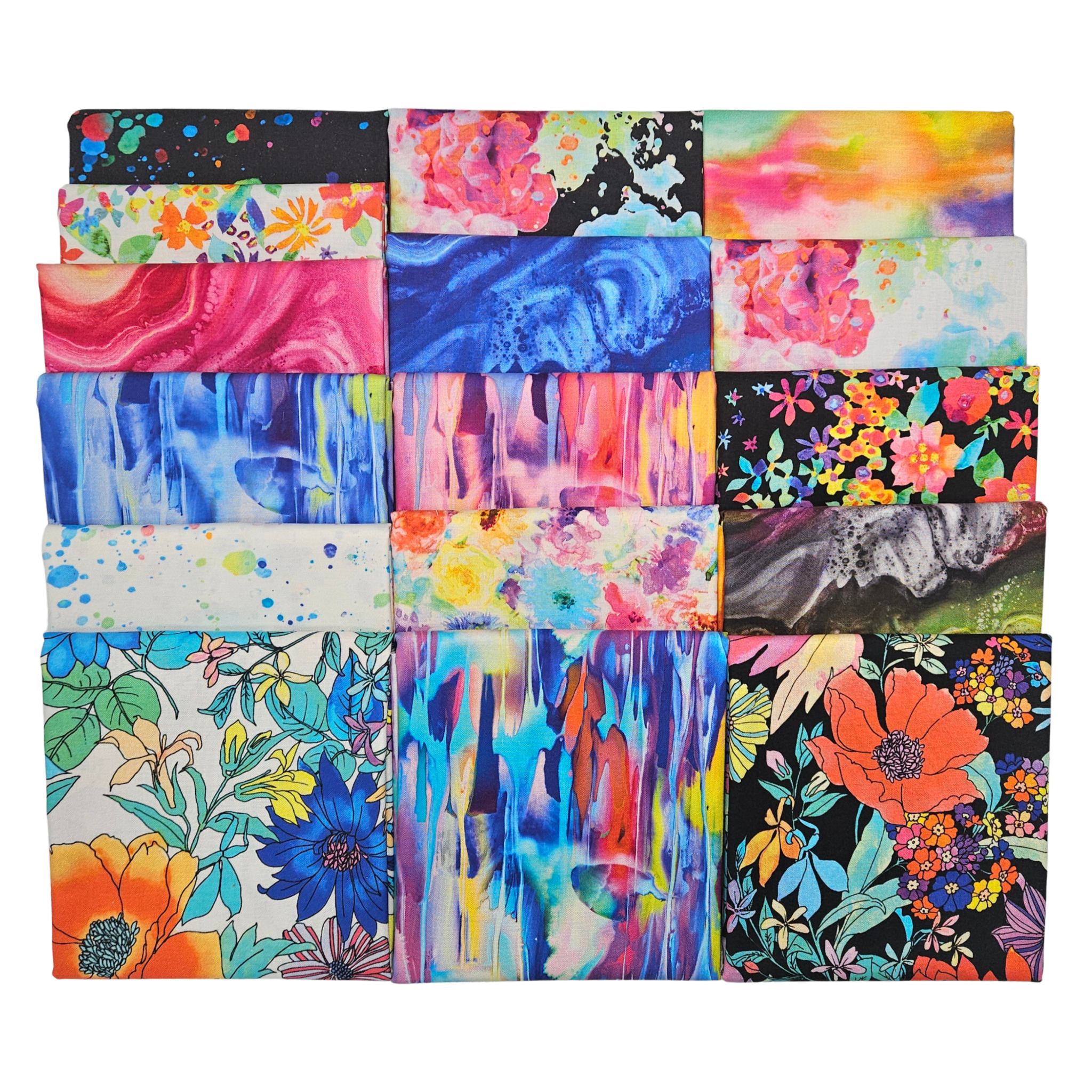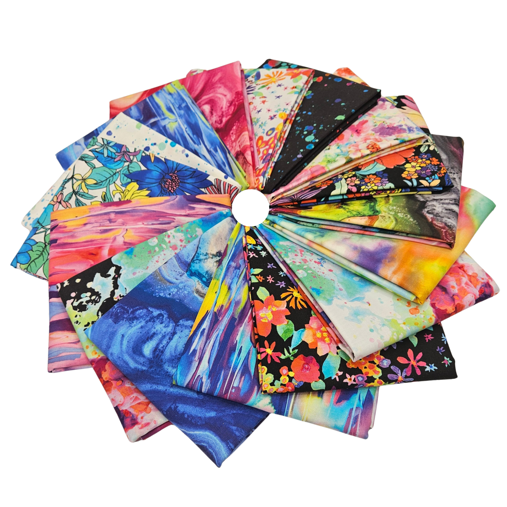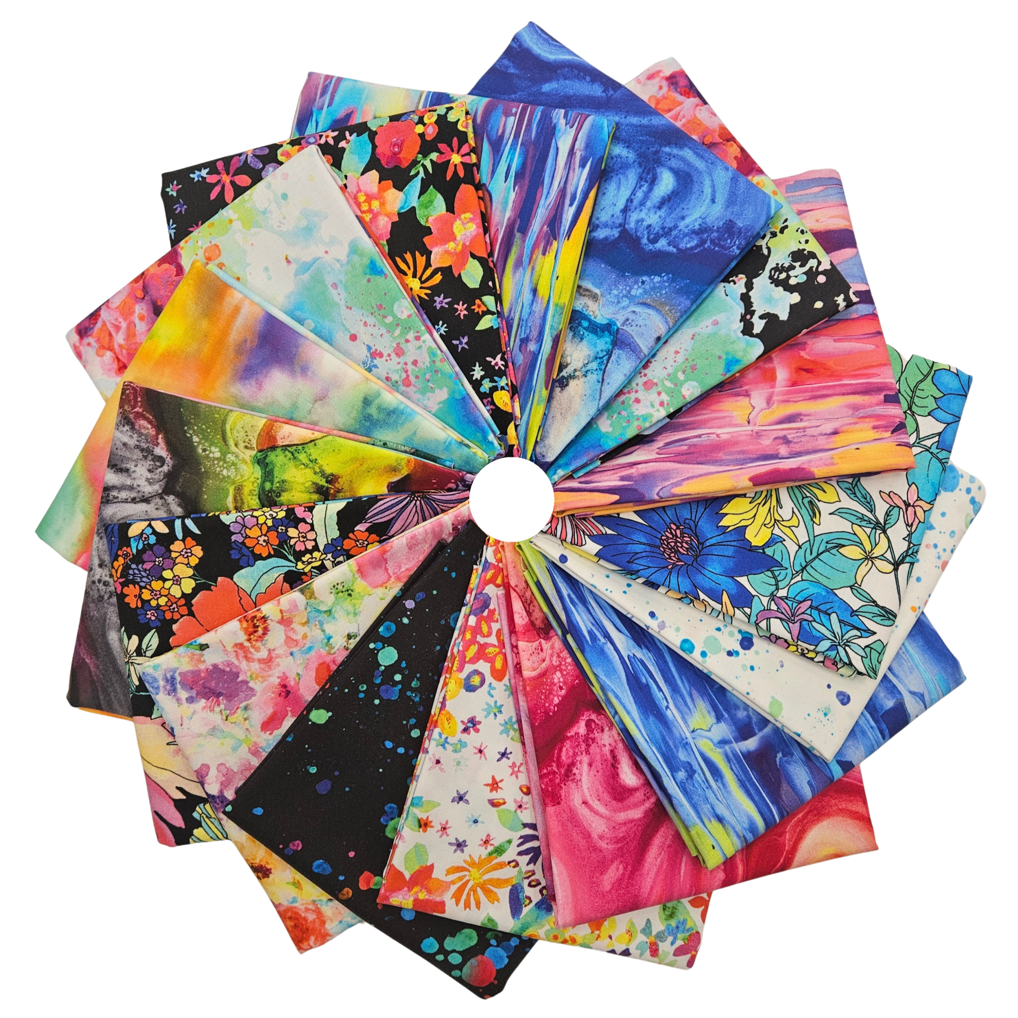 The Gradients Euphoria Half Yard Bundles include 16 half yard cuts, (18" x 42"), hand cut in our shop. The bundles include one of each fabric shown from the Gradients Euphoria Collection designed by Moda Fabrics.
