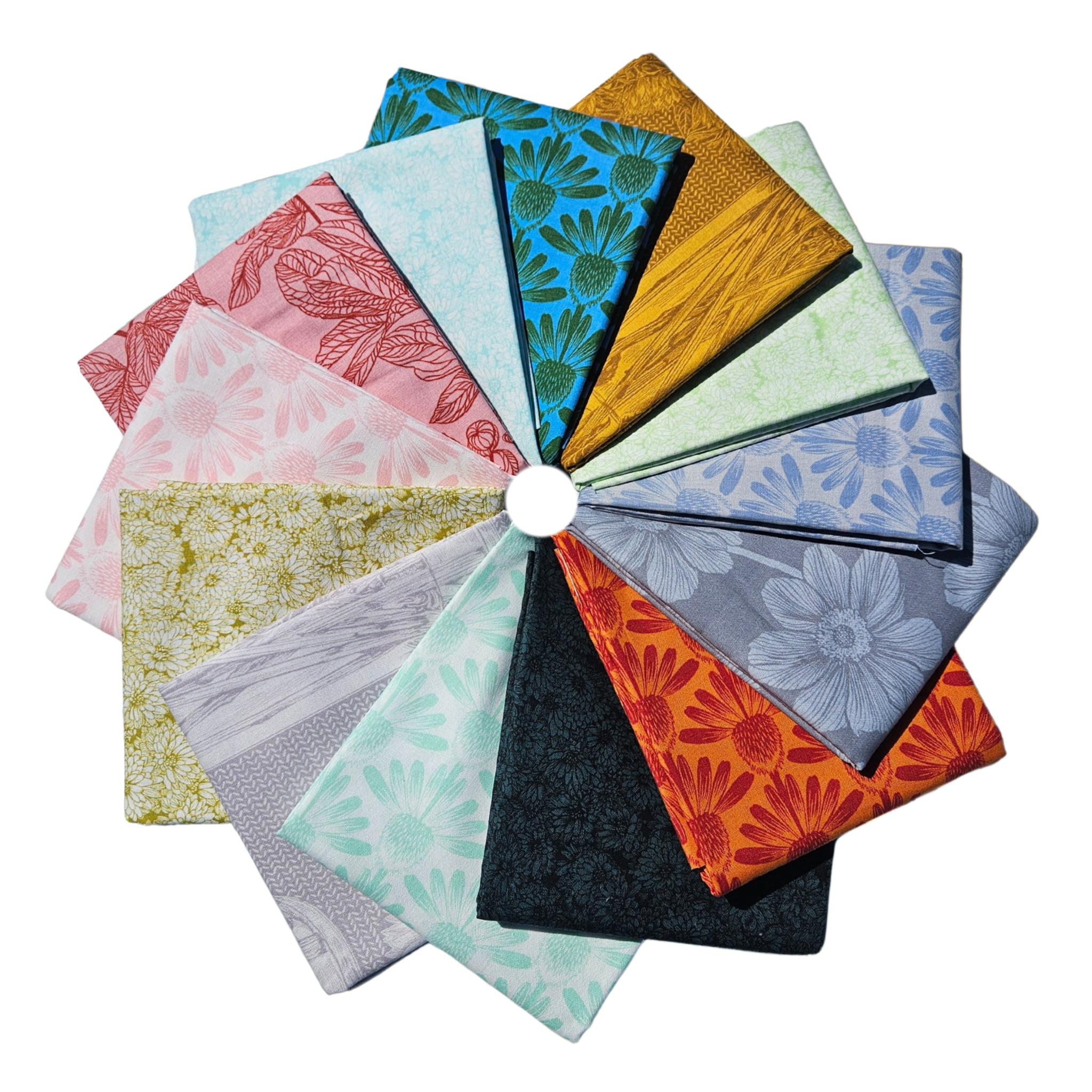 This Indelible Combo Half Yard Bundle includes 13 half yard cuts, (18" x 42"), hand cut in our shop. Each bundles includes one of each fabric shown from the Indelible and Indelible Soft collections by Anna Maria Textiles for Northcott Fabrics.