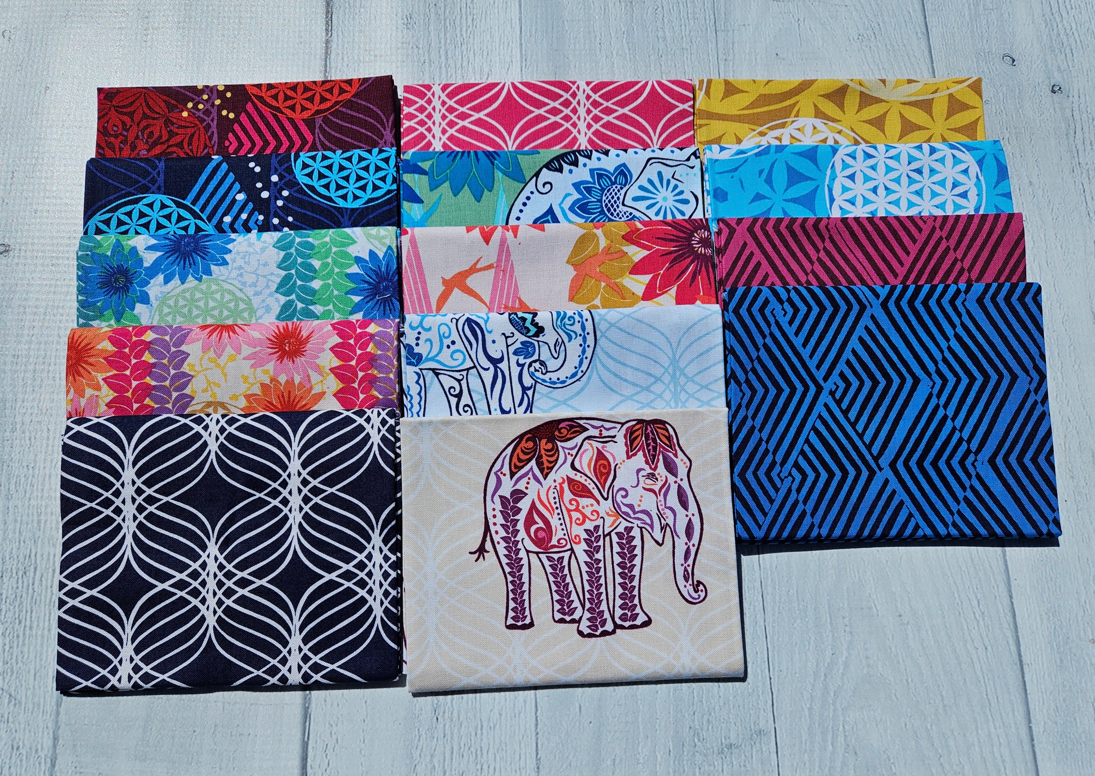Le lot Kismet Half Yard comprend 14 coupes Half Yard (18" x 44"), une de chaque impression de la collection Kismet conçue par Valori Wells pour FreeSpirit Fabrics.