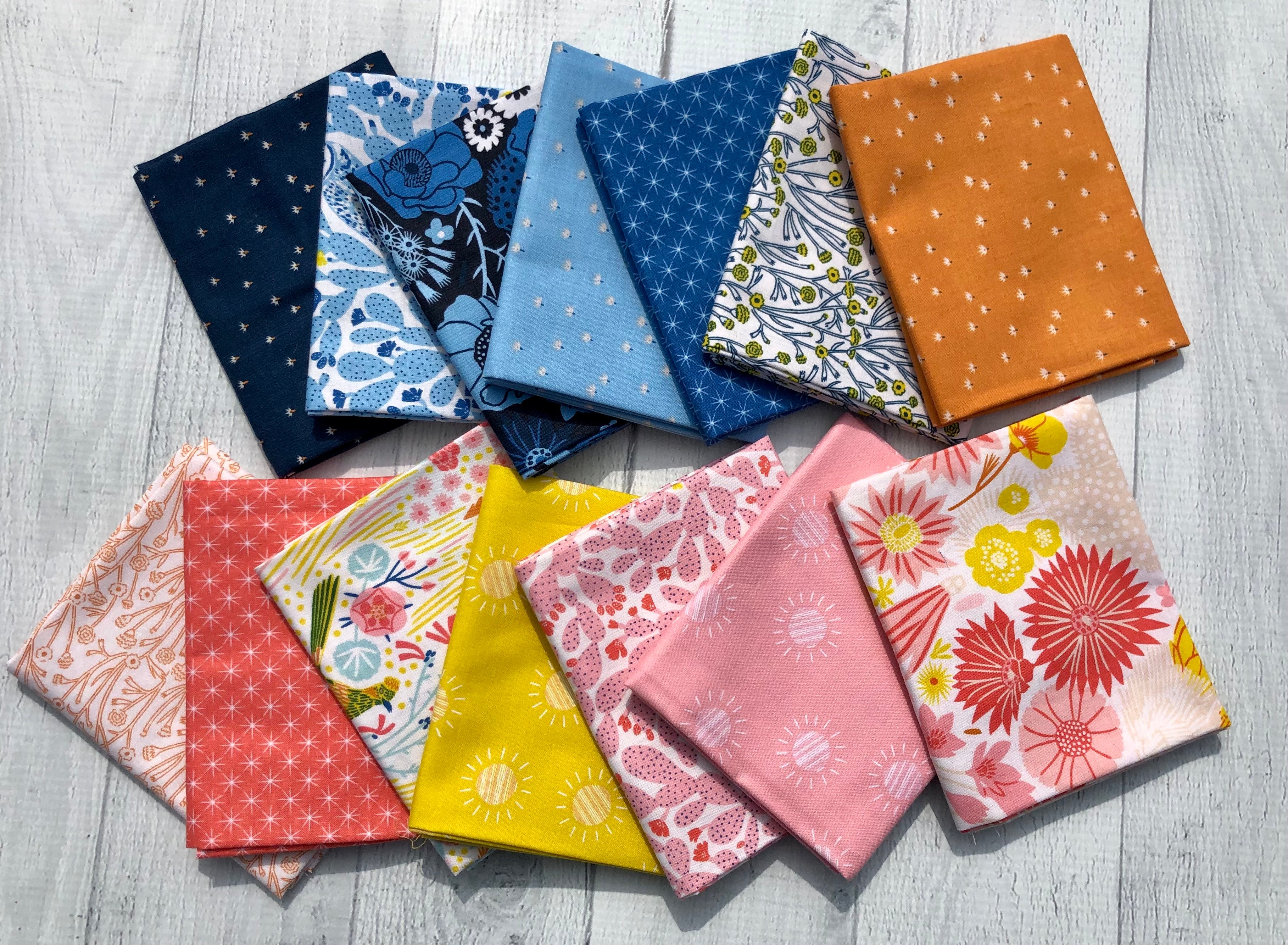 Le lot Prickly Pear Fat Quarter comprend 14 gros quartiers (18" x 22"), un de chaque imprimé de la collection Prickly Pear conçue par Emily Taylor pour Figo Fabrics.