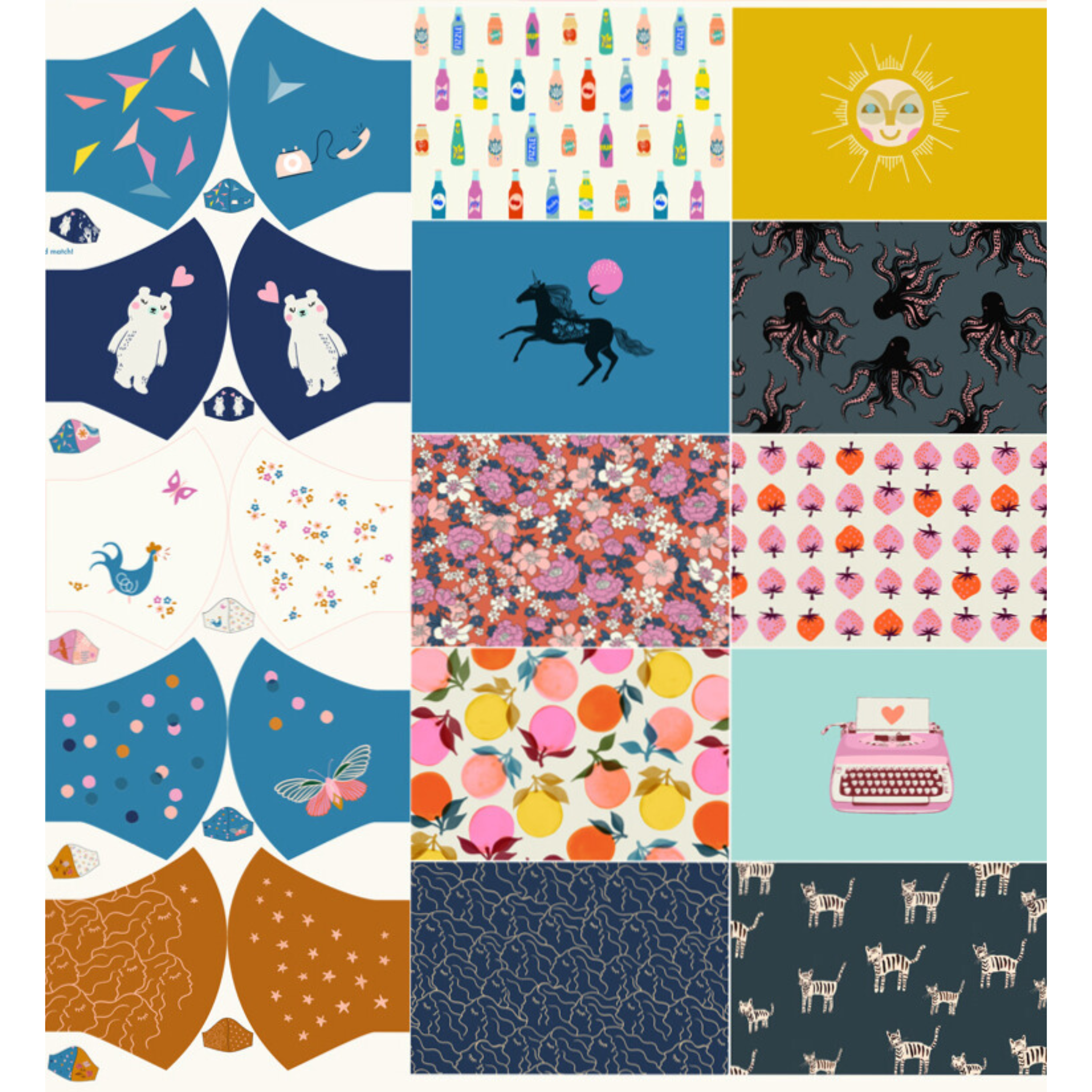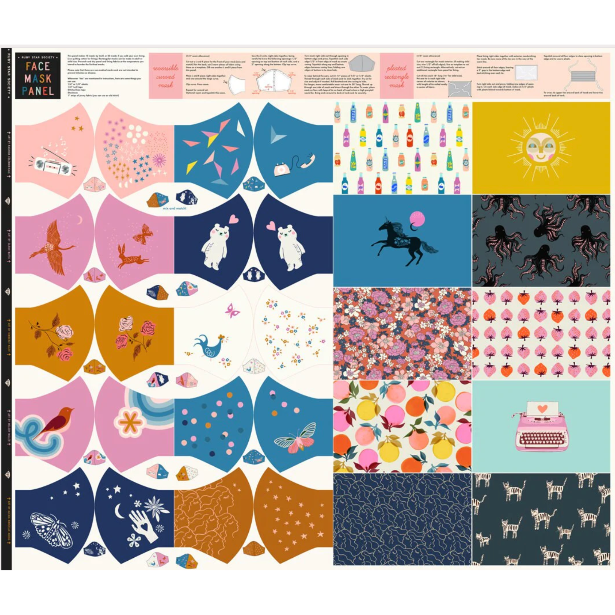 Le panneau fabrique 10 masques seul ou 20 masques si vous ajoutez une doublure supplémentaire. Le panneau comprend des instructions de tissu et de couture pour les masques incurvés réversibles et les masques rectangulaires plissés. Les masques rectangulaires peuvent être fabriqués en taille adulte et enfant. Plusieurs panneaux achetés seront coupés séparément, sauf demande contraire.