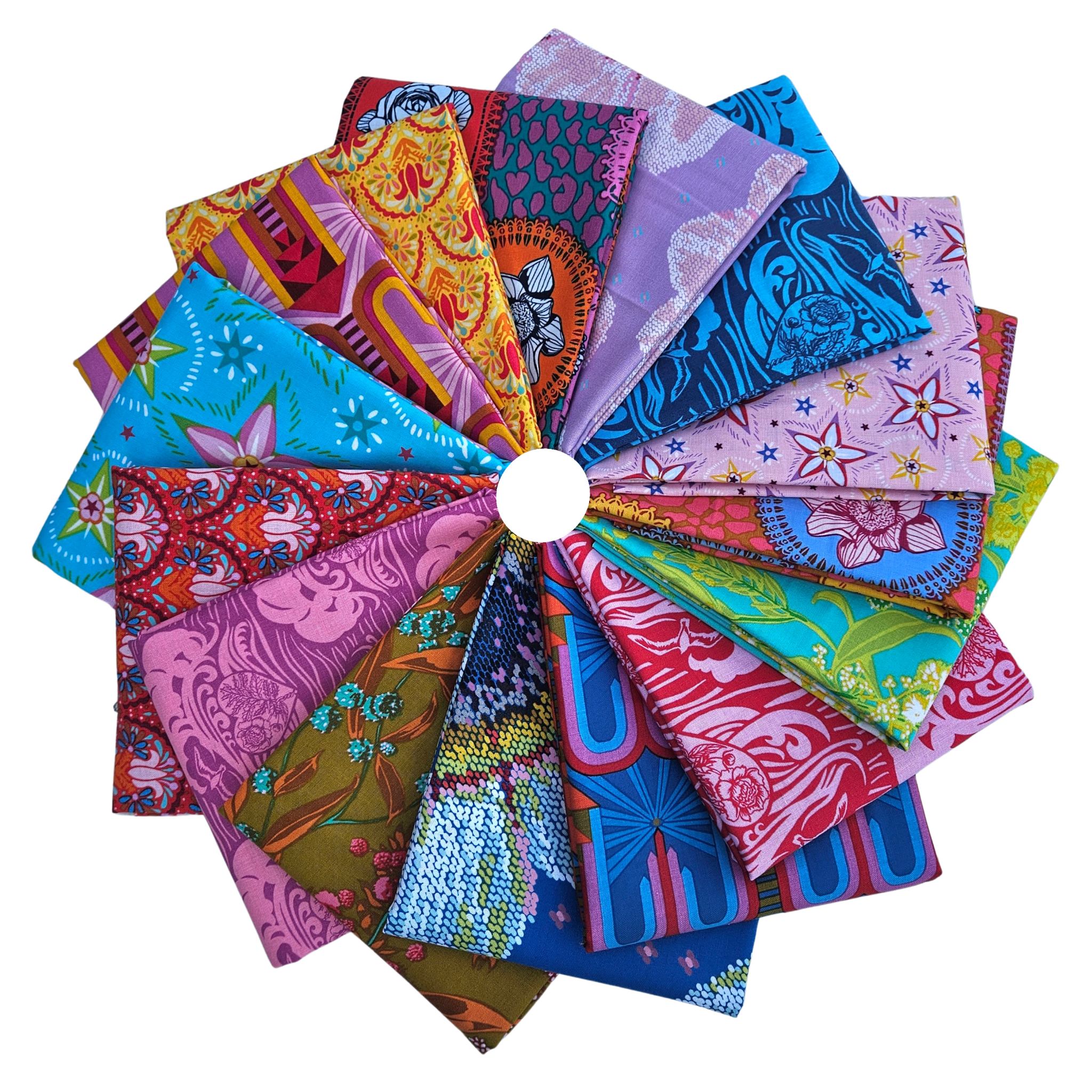 Le lot Welcome Home Half Yard comprend 22 coupes d'un demi-mètre (18" x 44"), coupées à la main dans notre boutique, et comprend chaque impression de la collection Welcome Home conçue par Anna Maria Horner pour Free Spirit Fabrics.