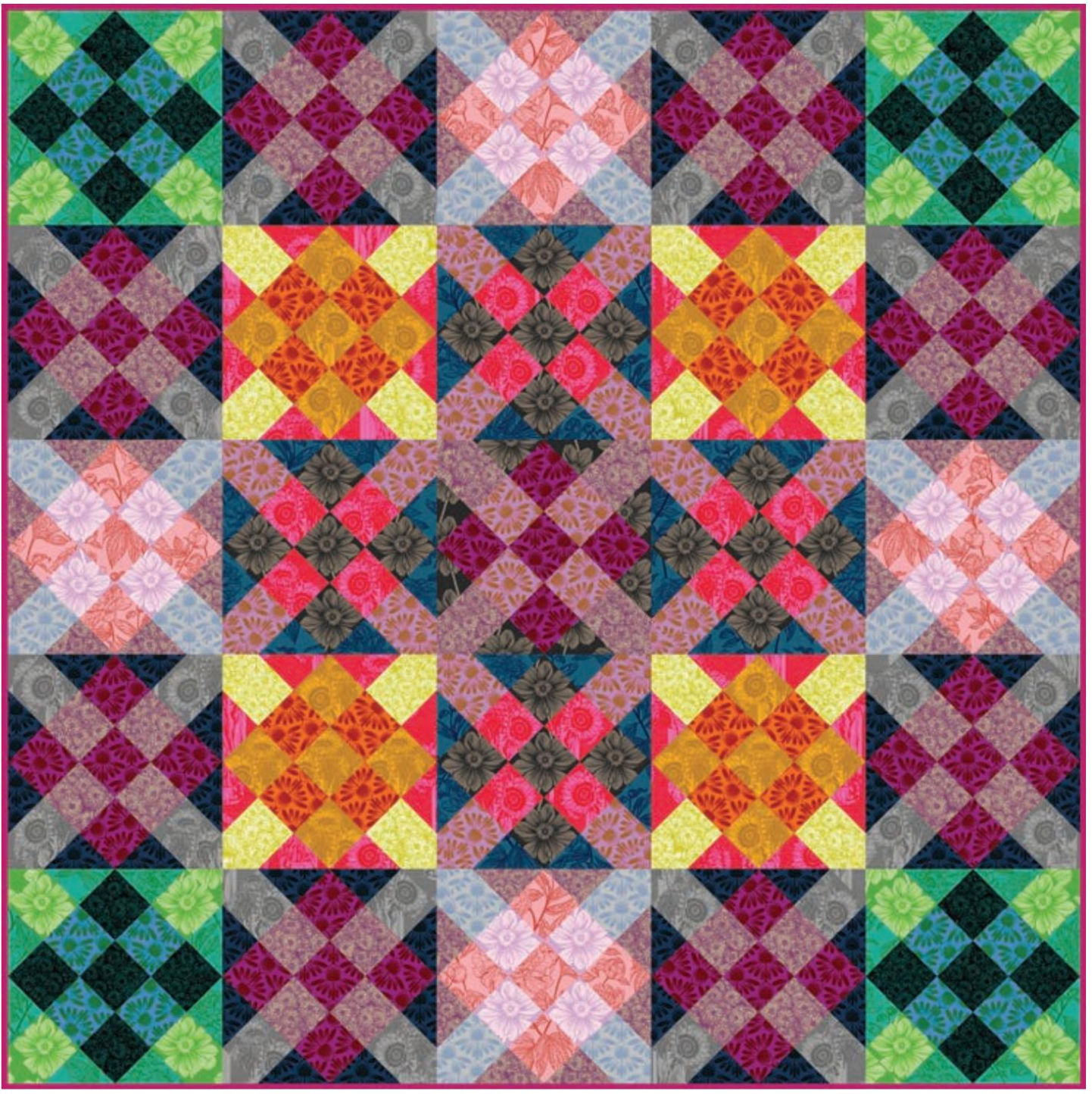 The Indelible Quilt Kit showcases Anna Maria's first collection with Anna Maria Textiles at Northcott. This simple and straightforward block quilt is perfect for detailing subtle color shifts in your fabrics as well as contrasts in value. It is a slightly more expanded version of the classic "Double Cross" quilt block. The quilt kit comes with all the fabrics for the quilt top and binding, the quilt pattern with clear instructions and include acrylic templates for the blocks.