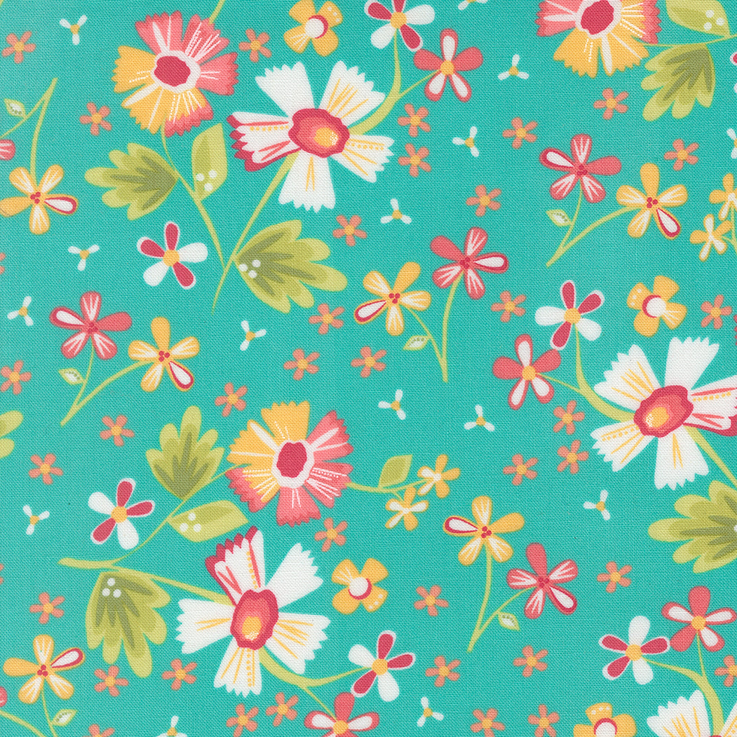 Corey Yoder's In The Garden collection for Moda Fabrics brings vibrant botanical charm to your quilting projects. This is a follow up to her first line of fabric, Prairie, and features an enchanting scatter of coral, golden, and turquoise blooms that evoke the warmth of a thriving garden in full season.