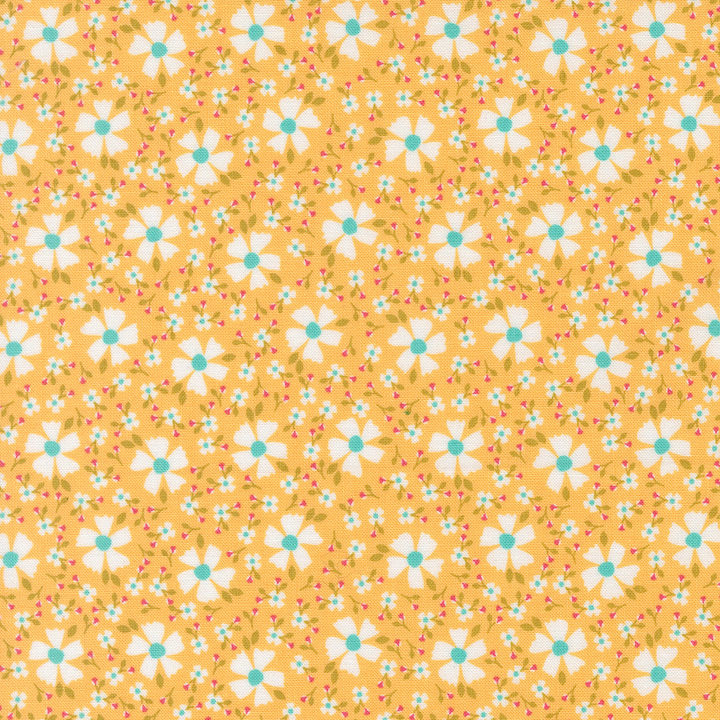 Corey Yoder's In The Garden collection for Moda Fabrics brings vibrant botanical charm to your quilting projects. This is a follow up to her first line of fabric, Prairie, and features an enchanting scatter of coral, golden, and turquoise blooms that evoke the warmth of a thriving garden in full season.