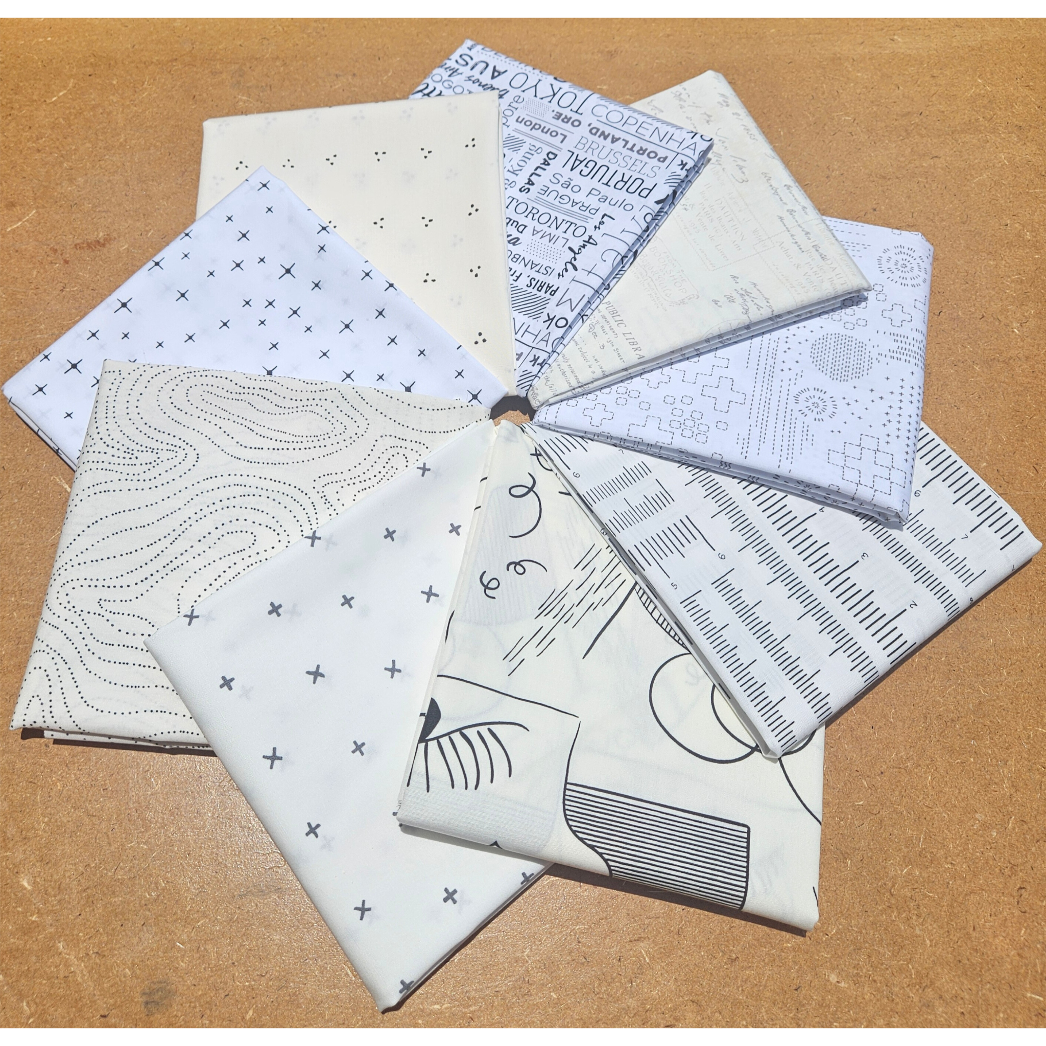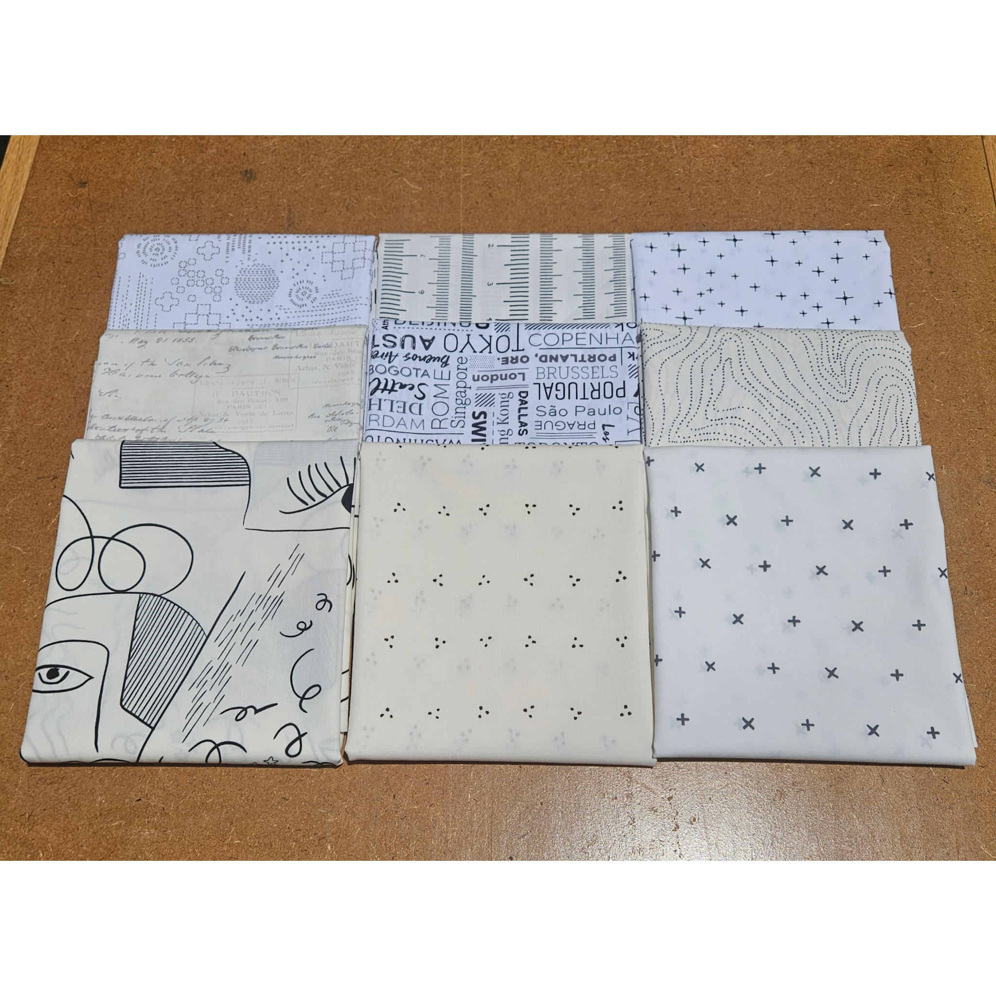 This AGF BG Low Volume HalfYard bundle includes 9 half yard cuts, (18" x 42"), hand cut in our shop. The bundles include one of each print shown from the AGF Low Volume collection designed by Art Gallery Fabrics.