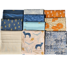 The Coyote Hill Half Yard bundle includes 9 half yard cuts, (18" x 42"), plus an additional piece that is (13" x 42"), hand cut in our shop. The short fabric is COH28904, Beetle Parade in Blue. Each bundle includes one of each print shown from the Coyote Hill collection designed by Katie O'Shea for Art Gallery Fabrics.